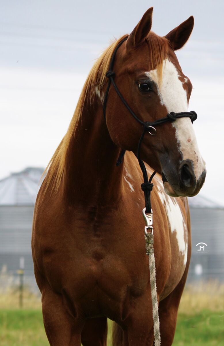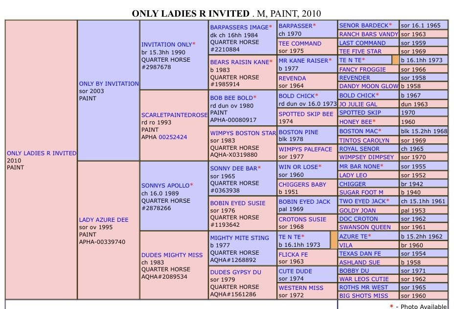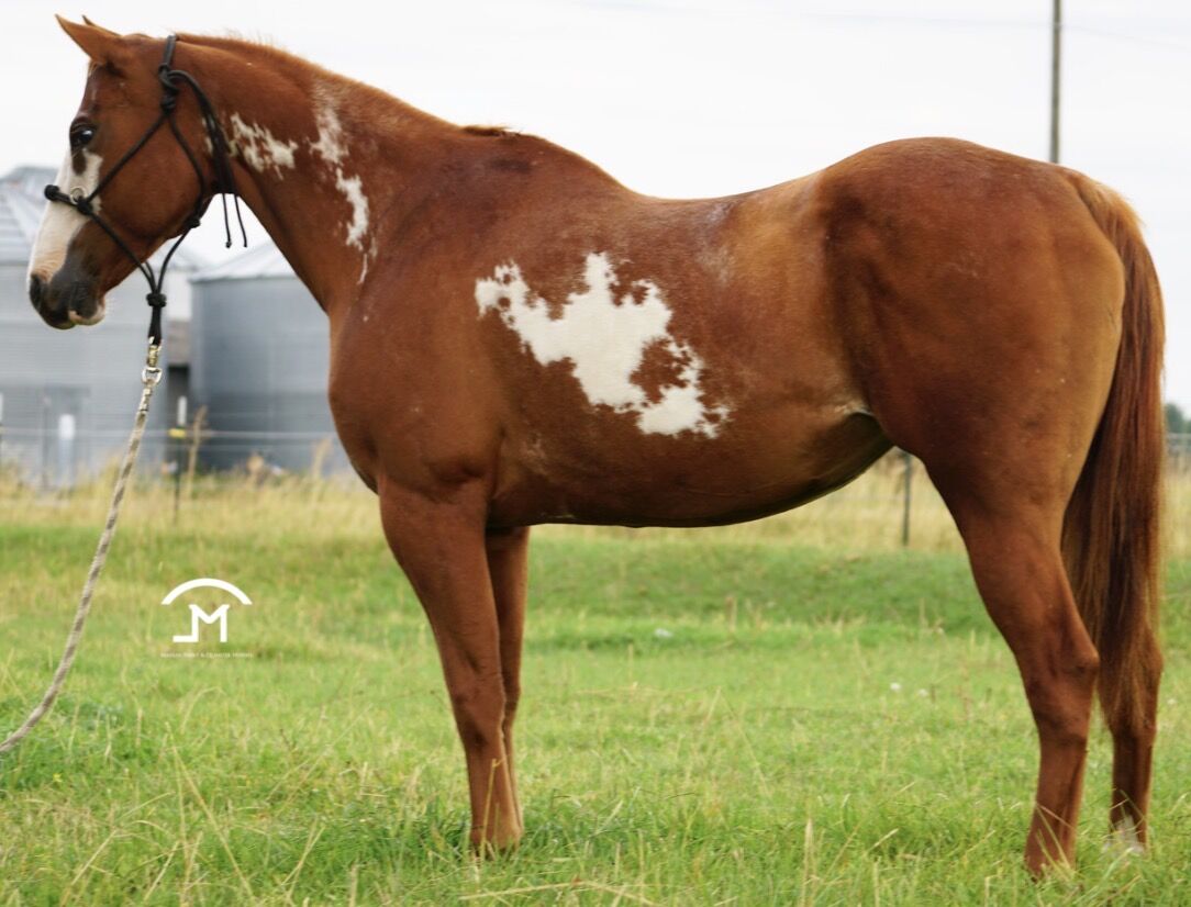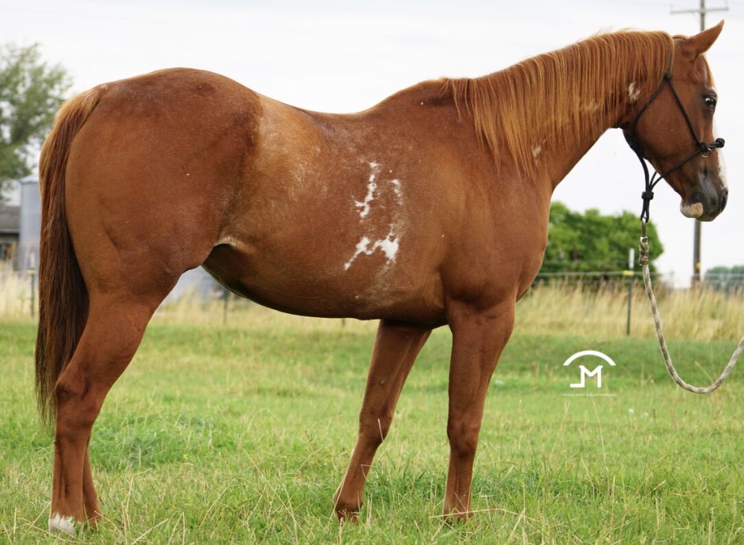 2010 APHA Sorrel Overo Mare by ONLY BY INVITATION, by the great INVITATION ONLY, out of LADY AZURE DEE, granddaughter of Hall-of-Fame stallions TE N TE and AZURE TE. With her bald face and white socks, she not only gives her good looks to her foals but also mind and quietness that is desired in a performance horses. She is a half-sister to our herd sire, MR FANCYS INVITATION. 6 Panel: N/N Open For 2026