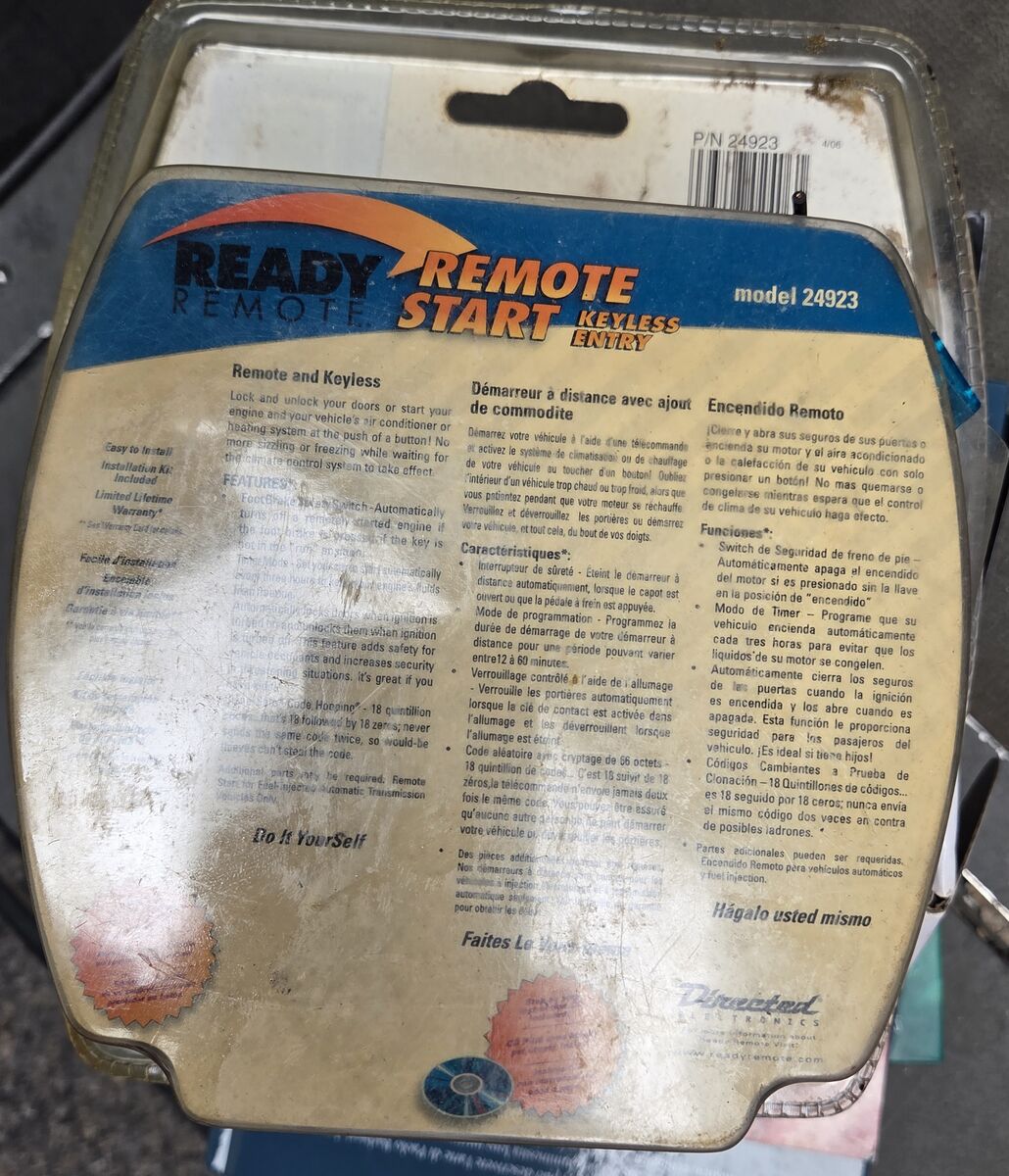 VenmoThe Ready Remote Car Starter by Directed Electronics (Model 24923) is a remote start kit that provides keyless entry and bypass module functionality. Made in China, this product allows users to start their car remotely and access their vehicle without the need for a physical key. Perfect for convenience and security, this car electronics accessory is a reliable choice for those looking to upgrade their vehicle's entry system.