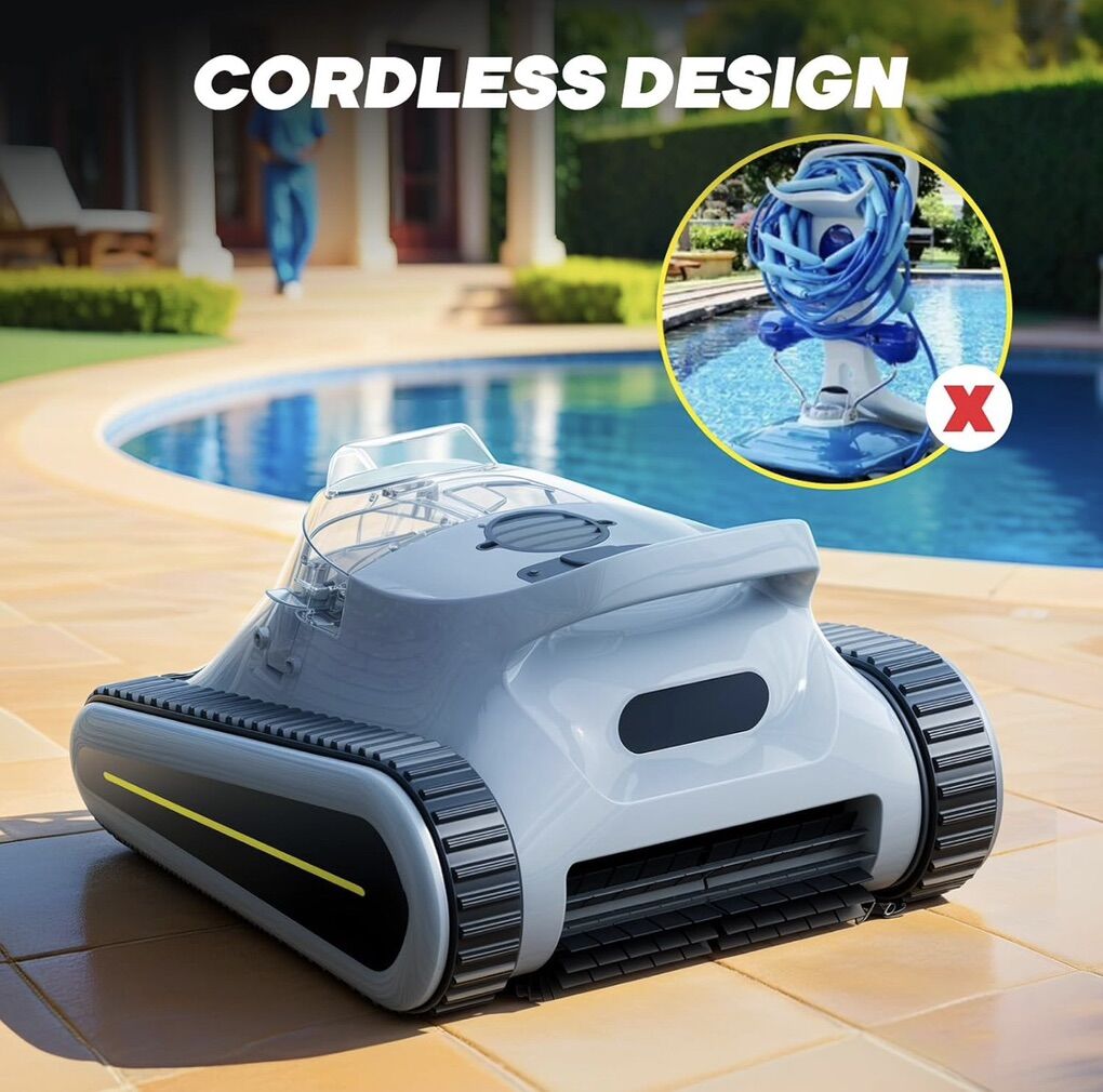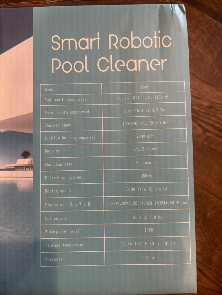 Description- Cordless robotic pool vacuum. See photos for more product information and specifications.
