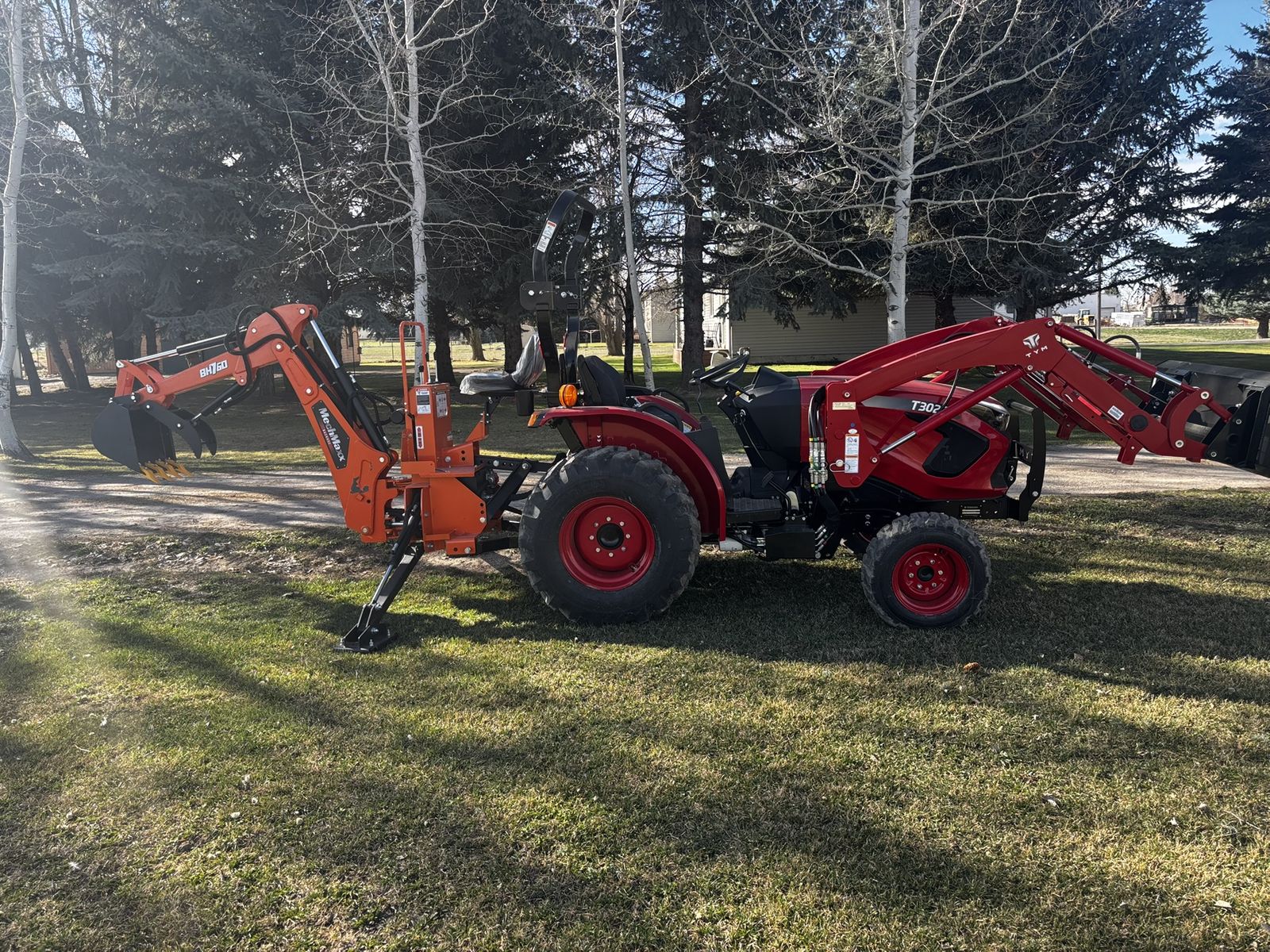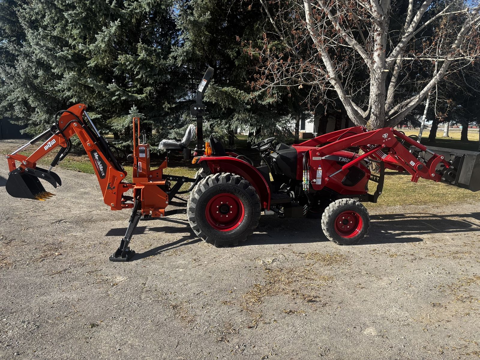 PKG Deal a TYM T3025 tractor with RANGE HYDRO MAX HST TRANSMISSION 2,200 LBS LIFT CAPACITY AT PIVOT PINS UNIVERSAL SKID STEER QUICK ATTACH METAL HOOD CAST IRON AXLES POWER STEERING 4WD/DIFFERENTIAL LOCK CRUISE CONTROLalso a New Mechmaxx backhoe with a 8ft digging depth- I like these little backhoes as: