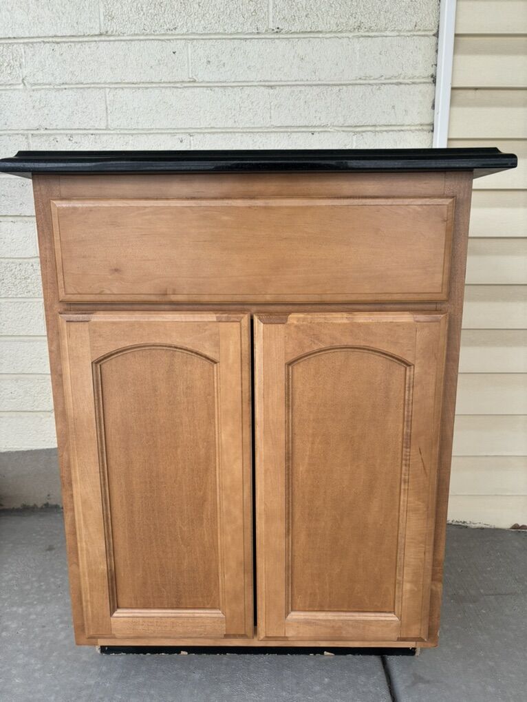 VenmoVanity cabinet with Black Granite Top and undermount china bowl sink