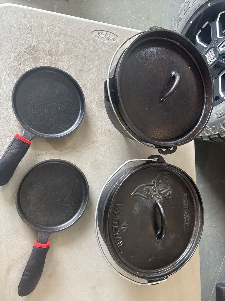 Used cast iron Dutch ovens and skillets asking $20.00 for all . Obo