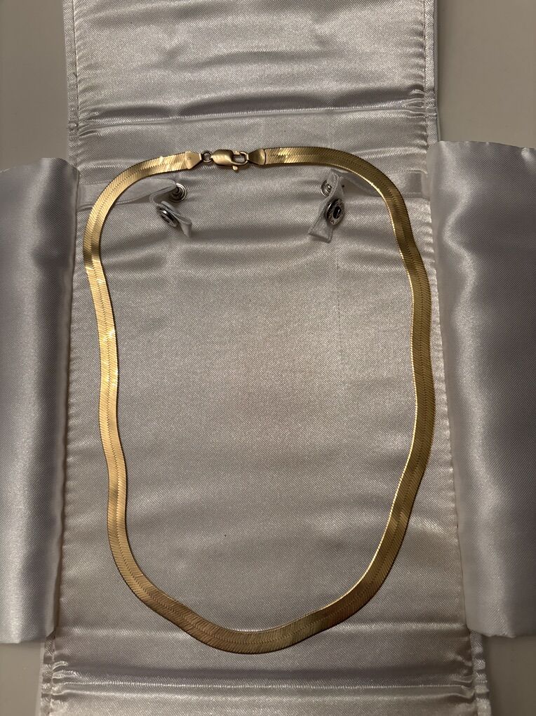 Solid 14 k necklace herringbone design 22” long 22 grams. Gold is going up in price $1700.00
