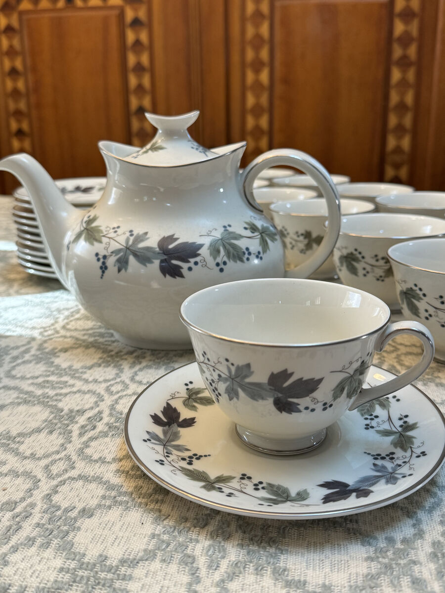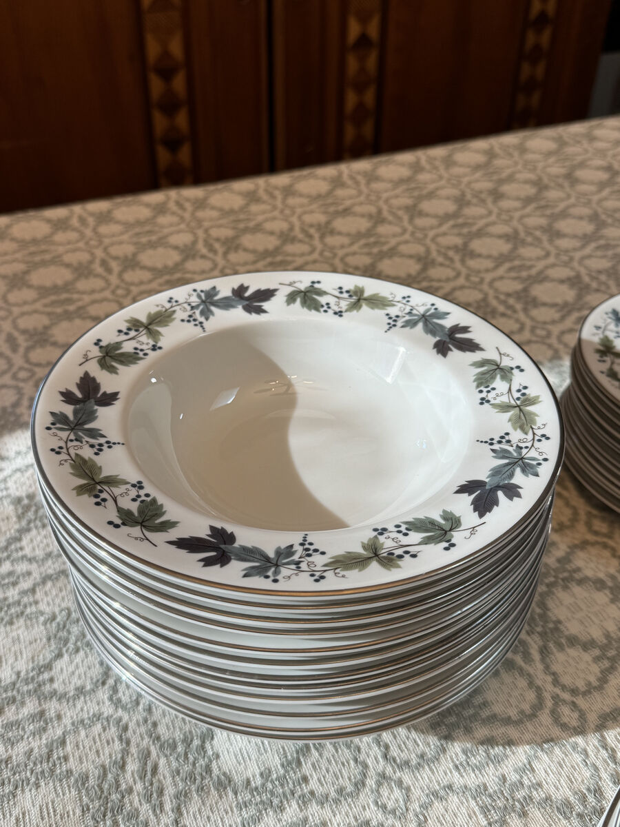 Venmo73 Piece Formal Dinner Set, Royal Doulton BURGUNDY TC1001 Great gift or hutch-filler. The set contains 12 each of the following: Dinner Plate, Salad Plate, Bread & Butter Plate, Rim Saucer, Tea cup, Tea Cup Saucer plus one elegant, traditional English teapot. Authentic Royal Doulton. All pieces complete, like new. You can find subsets of 4 or 5 pieces on the internet for $30-60.00, so this full set is definitely a good deal. Everything is boxed and carefully packed.