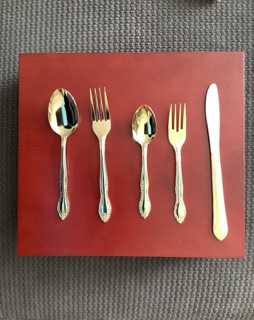 VenmoNew Goldplated Flatware with wooden storage chest Any question feel free to ask