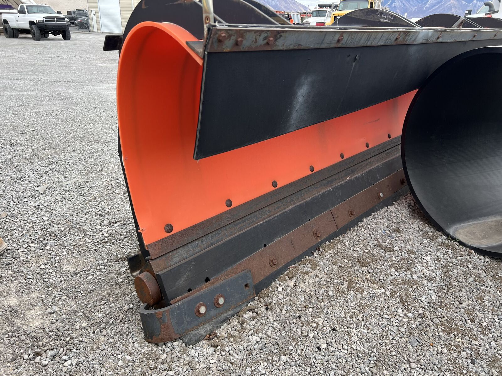 ApplePayPlow 10' wide plastic with metal frame so it's lighter. Rubber cutting edge. I don't have the truck side mount.