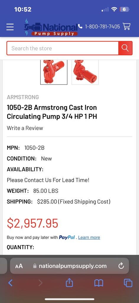 VenmoArmstrong Circulating Pump. Model: L2B 1050 AB Inline … Hot Water Pump. 3/4 HP. New $3500. Yours for $1700 obo.