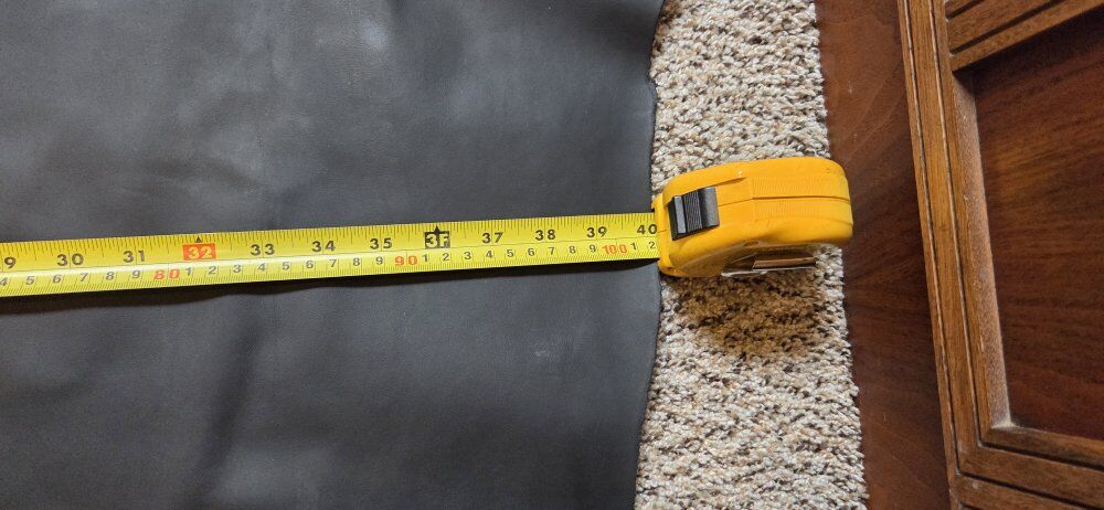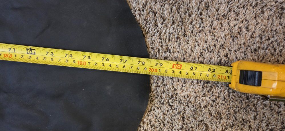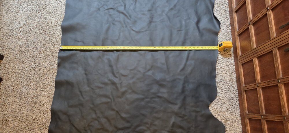 ZelleA near complete hide of black leather for sale. 78" at its longest and 40" at its widest. Overall in very good condition. Purchased for a project that didn't happen.