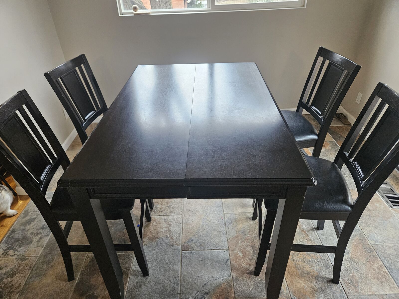 VenmoUpgrade your dining space with this versatile tall table and 4-chair set. It’s the perfect height for casual meals or a morning coffee, but it easily expands thanks to the built-in extension leaf when you have guests over.