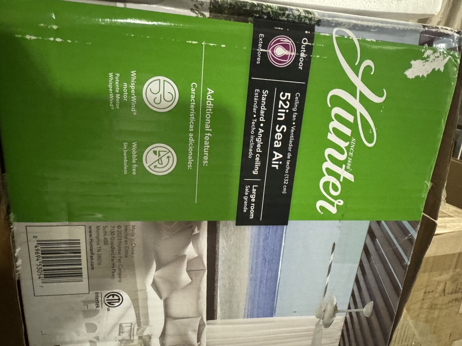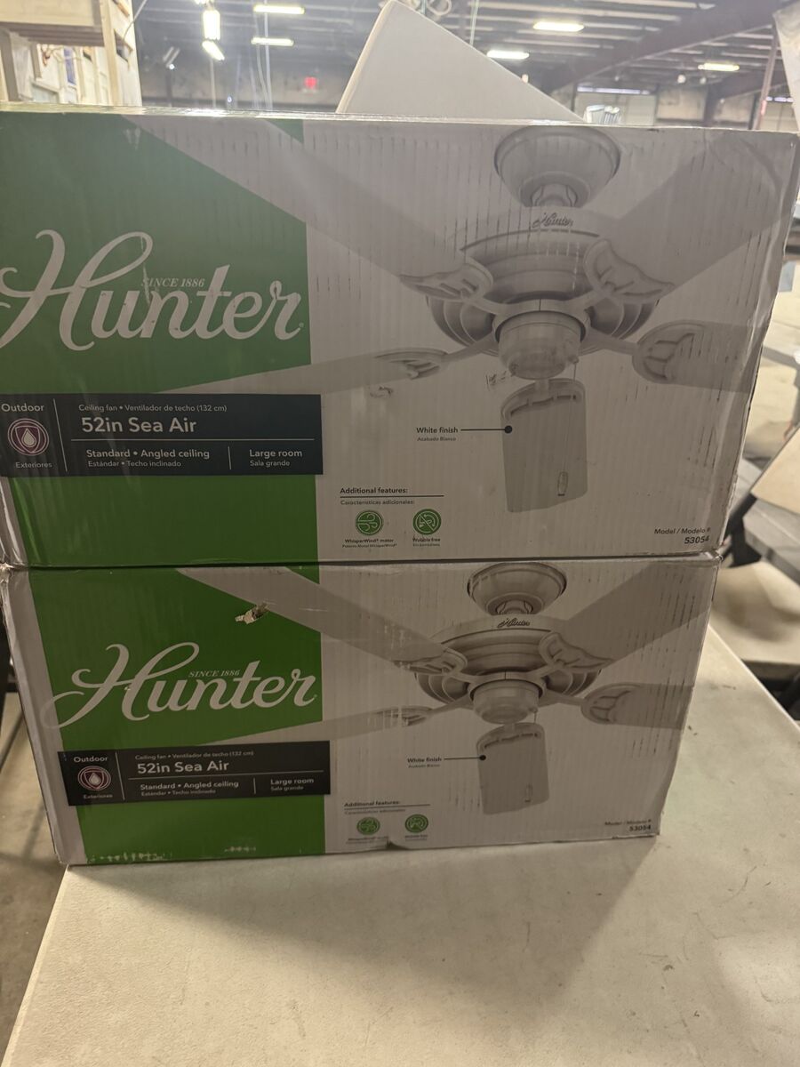 VenmoHunter 52 inch Outdoor or Indoor Ceiling Fan No Light - White Ceiling Fan without Light, For Patio, Porch, Garage, or Living Room, Standard Mount, 5 Blades, Pull Chain - Sea Air 53054, White