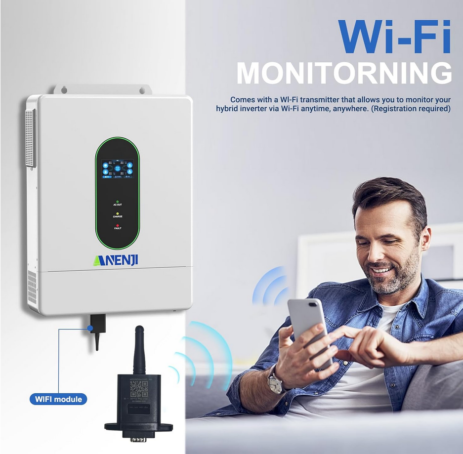 PayPalHybrid Solar Charge Inverter, 12000 Watt, 48 Volt Pure Sine Wave integrates 160 amp charger plus dual MPPT controllers with Smart Protection. Supports grid-tied or entirely off-grid applications and has built-in WiFi for real-time monitoring. Ideal for homes or that off-grid get away.