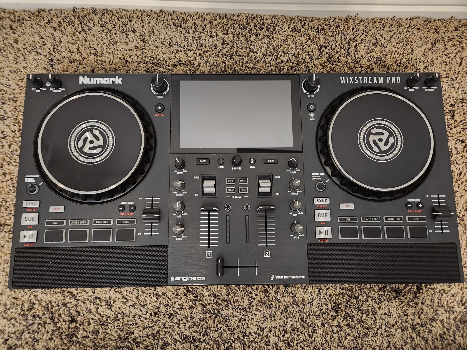 VenmoIn excellent working condition and includes power adapter. No laptop needed! Standalone DJ controller with touchscreen display, built-in WiFi for streaming, built-in speakers, and built-in FX. Updated to the newest firmware. Great for beginner, intermediate, and mobile DJs.