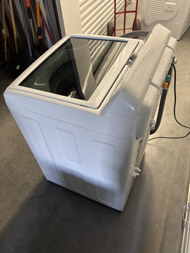 ApplePayMatching Samsung top-load washer and dryer set in white. We purchased both units brand new and used them for less than 2 years before placing them in storage. They are in excellent, like-new condition and have been well cared for.