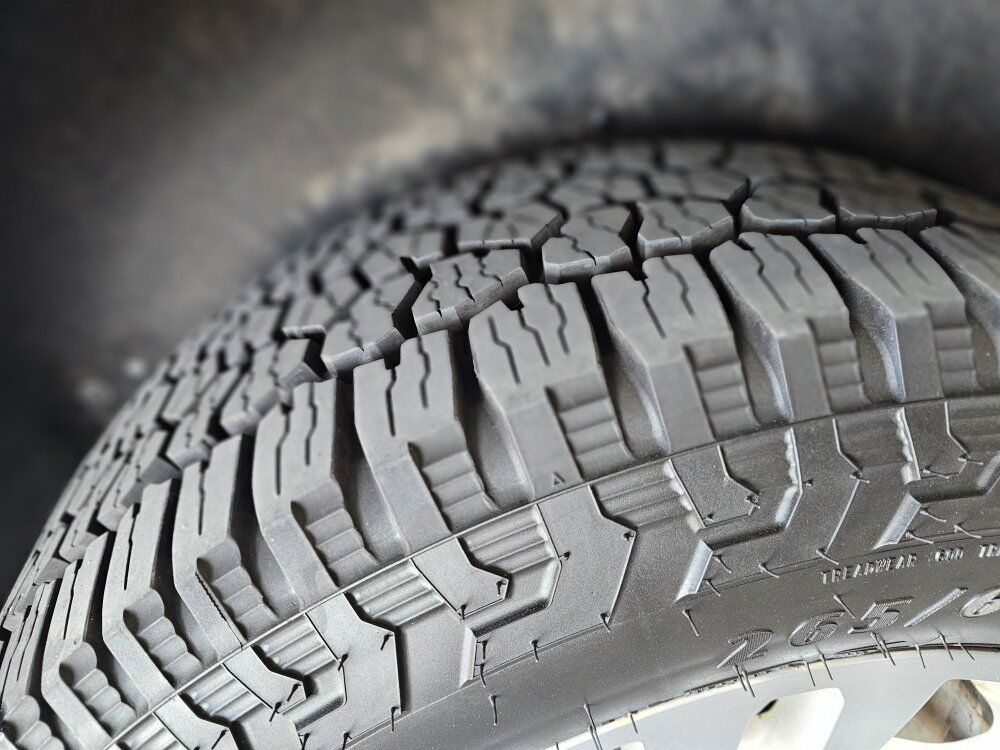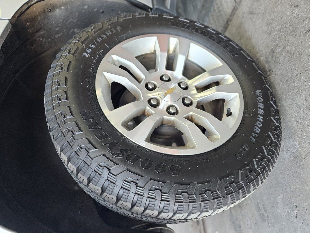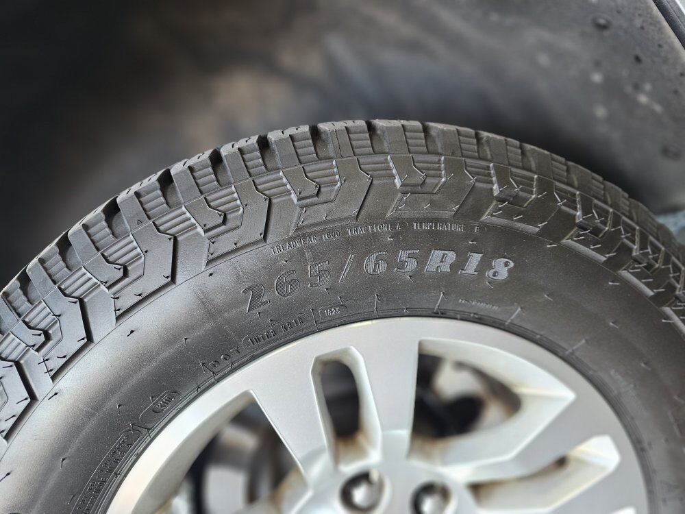 Rims and Tires for Sale set of 4 265/65R18 GOOD YEAR Wrangler Workhorse AT 2-XL Tires: Purchased from BURT BROTHERS Tire and Service for $1,36.80 on 9/25/25 and only have 3,828 miles of drive time.