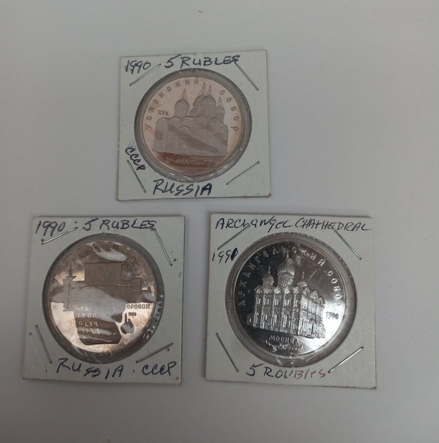 Vintage Russian coins. All 3 are 5 Rubles each. uncirculated proof like cameo finish. Clad copper nickel. Each sold separately for price listed.