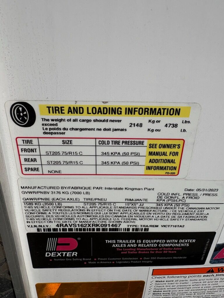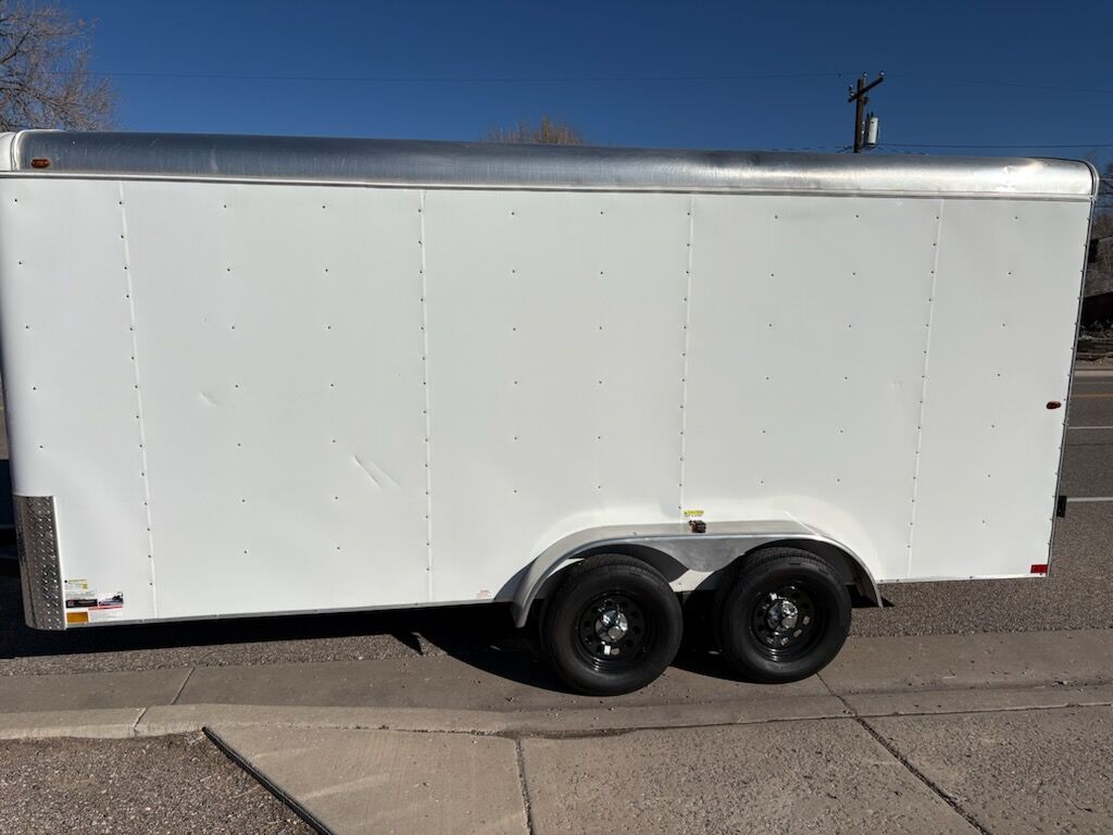 Very clean, garaged. Only used for moving, great condition. Electric brakes, all lights in working order. Rear barn doors. New spare tire included. Registration current until 2027. 2 5/16 th ball hitch required.