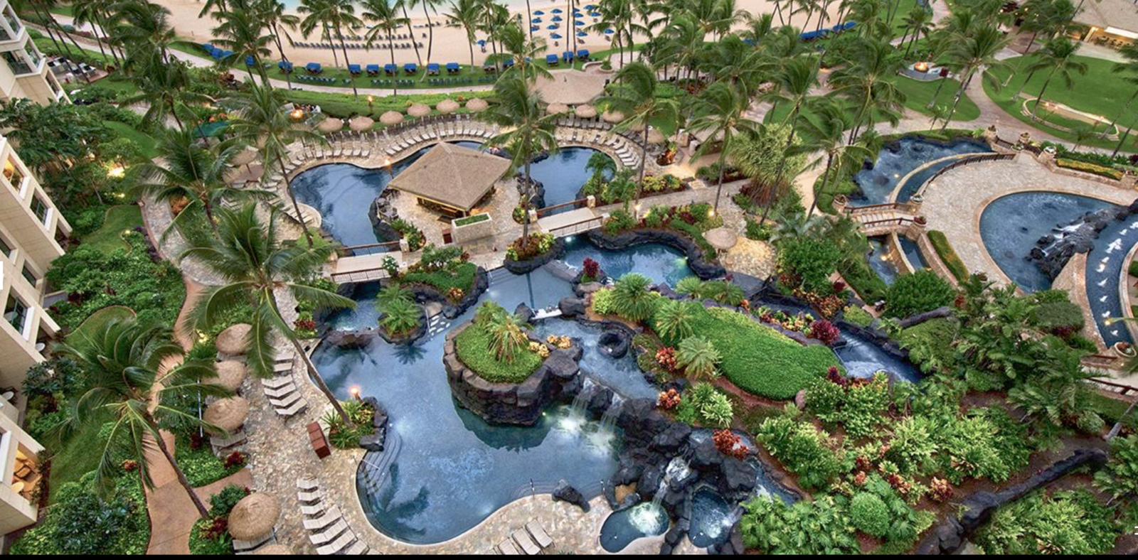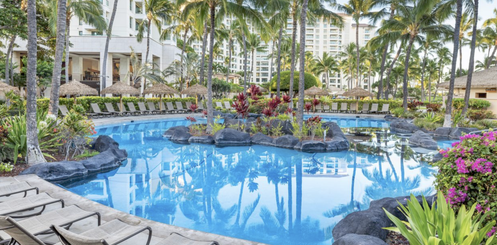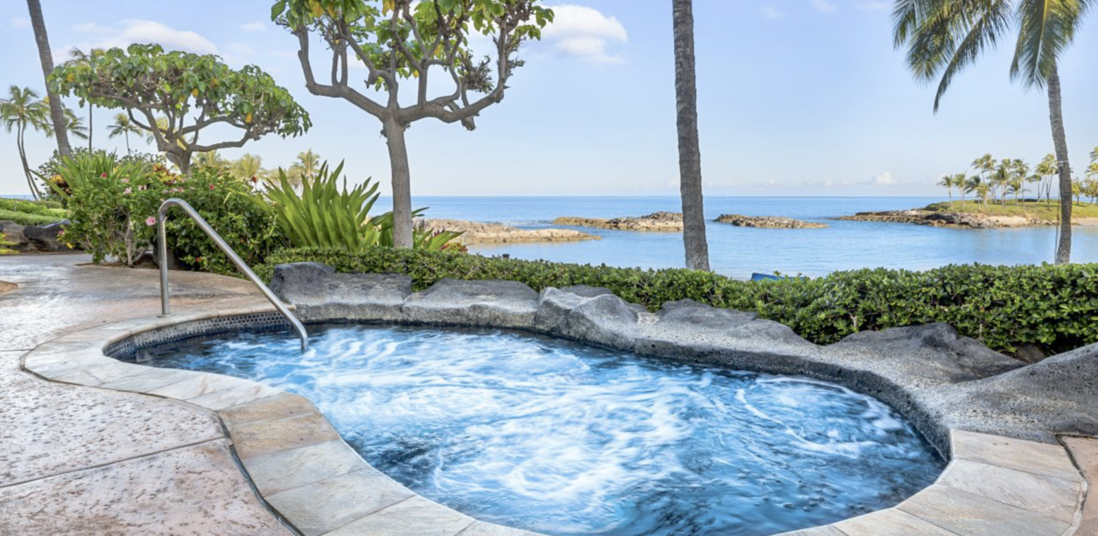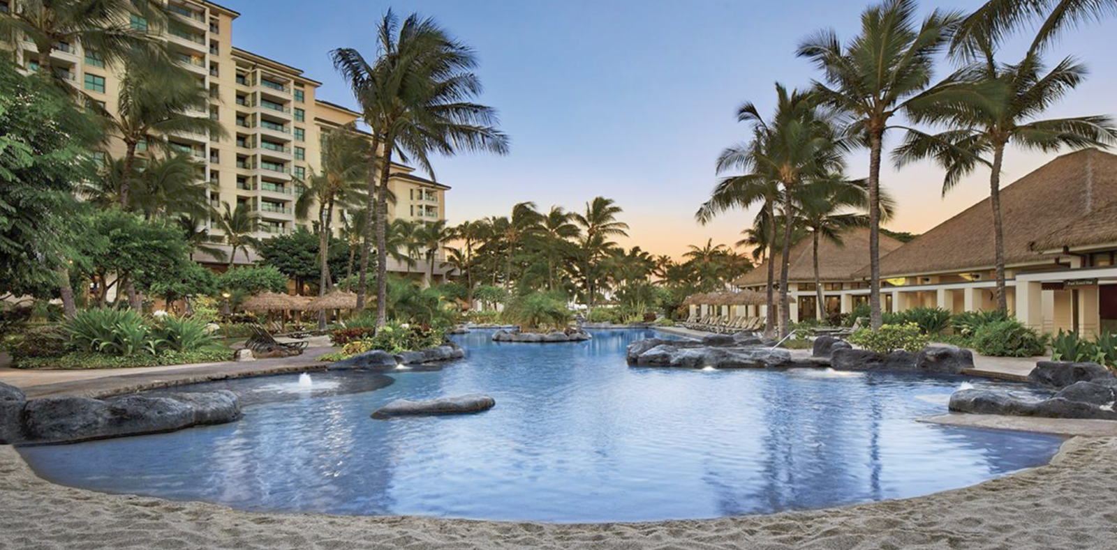Ko Olina has 2 miles of coastal frontage and includes three natural and four man-made lagoons with white-sand beaches. Ammenities include four swimming pools, the Nai’a Pool Bar, Longboards Bar and Grill, fitness center, The Marketplace convenience store, umbrella and cabana beach rentals and daily activities program. Guests will also enjoy access to the JW Marriott Ihilani Resort & Spa and Ko Olina Golf Club and Marina.
