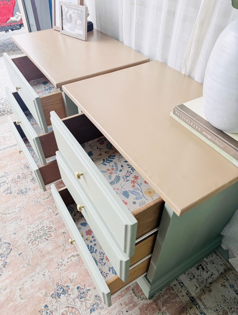 VenmoThis set of stunning, solid wood nightstands is exceptionally sturdy and heavy. Drawers slide well, on metal rollers.