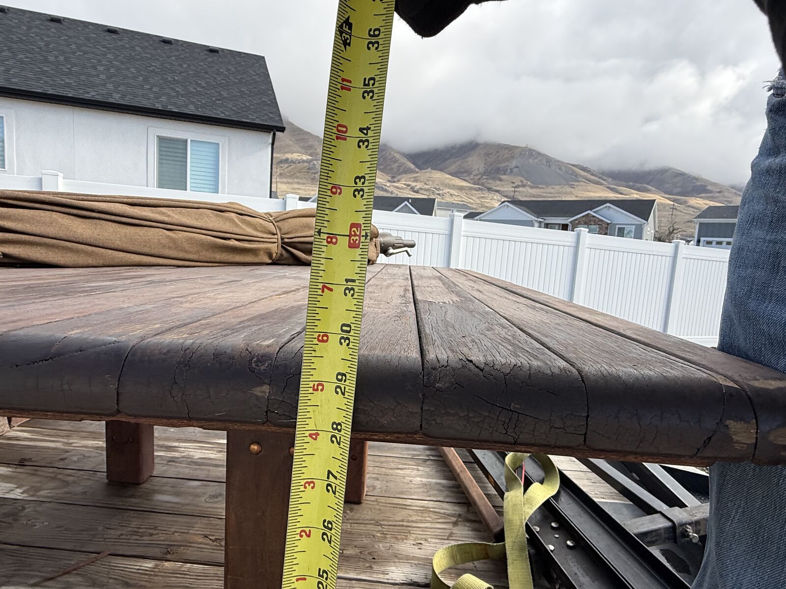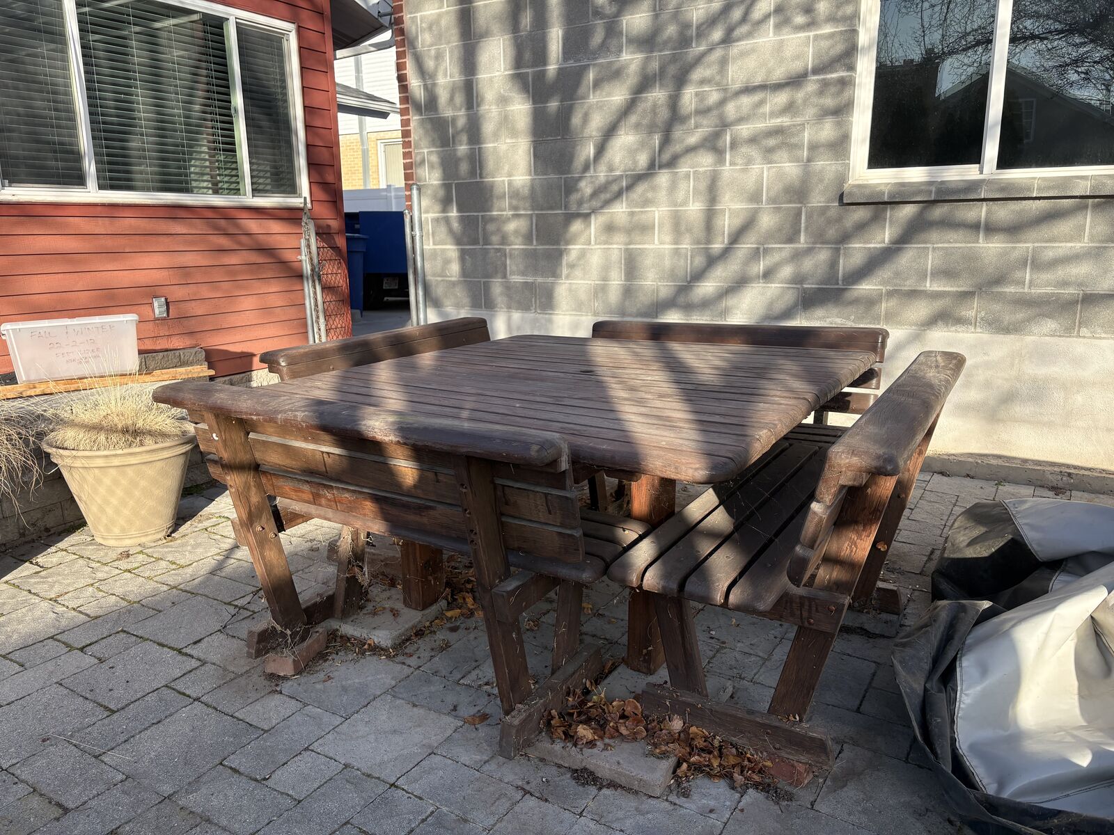 VenmoWe are selling our house unexpectedly and can’t use the table in the new home. Jarrah wood is an Australian hardwood that handles water and pests very well. Table includes 4 benches, umbrella and cover for table and benches. Reach out with any questions.