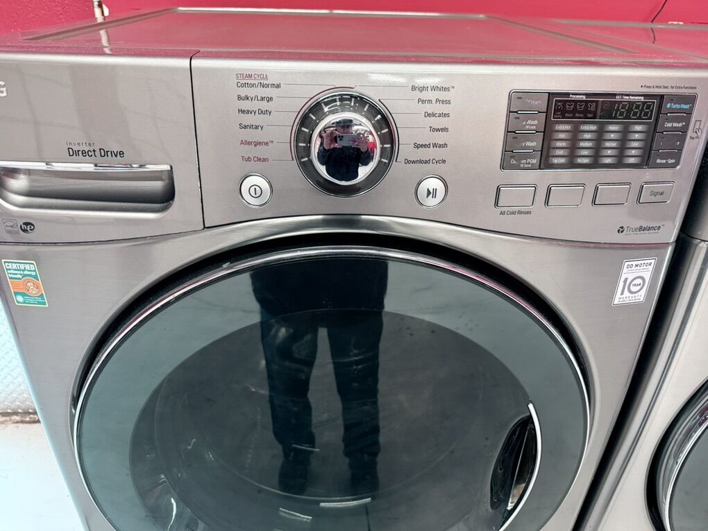 ApplePayVery clean matching Stainless Steel, Steam Ultra capacity, steam Lg washer & dryer set on pedestals that can go side by side!!