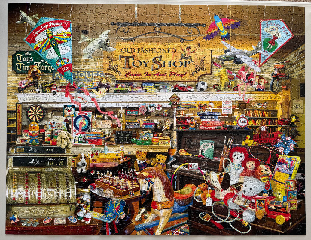 Venmo$20. 1000+ Piece Jigsaw Puzzle by Suns Out, An Old Fashioned Toy Shop. Complete. Finished Size: 27" x 35". Cash preferred. Pick up only in southwest Orem.