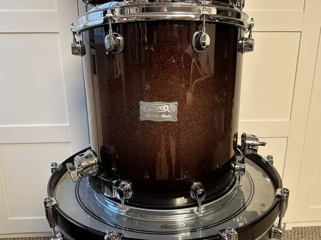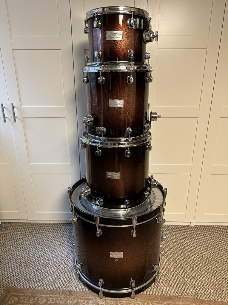 VenmoShells are 2 inner plies of walnut/4 outer plies of maple. Shells are in great condition. 24x20 kick (Yes, that’s correct. Head is 24” Depth is 20”), 12x9, 14x14, 16x16. Double braced stand for rack tom also available for extra $100.