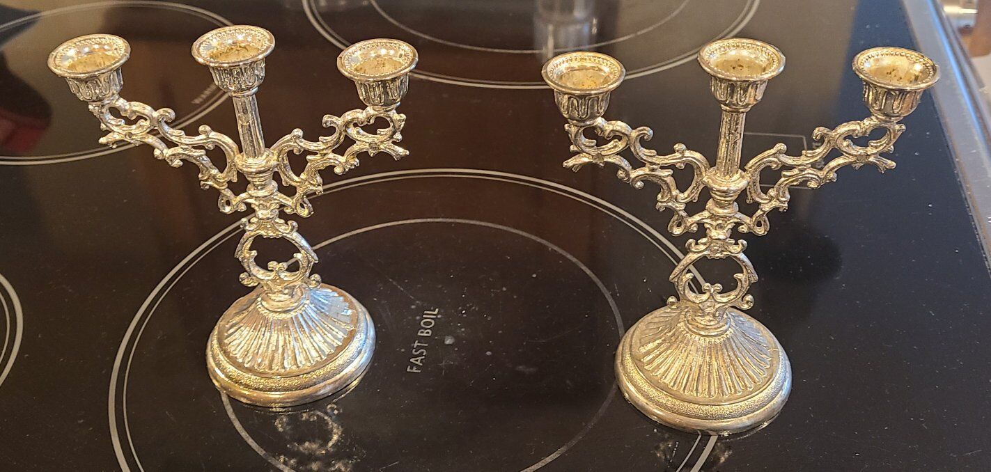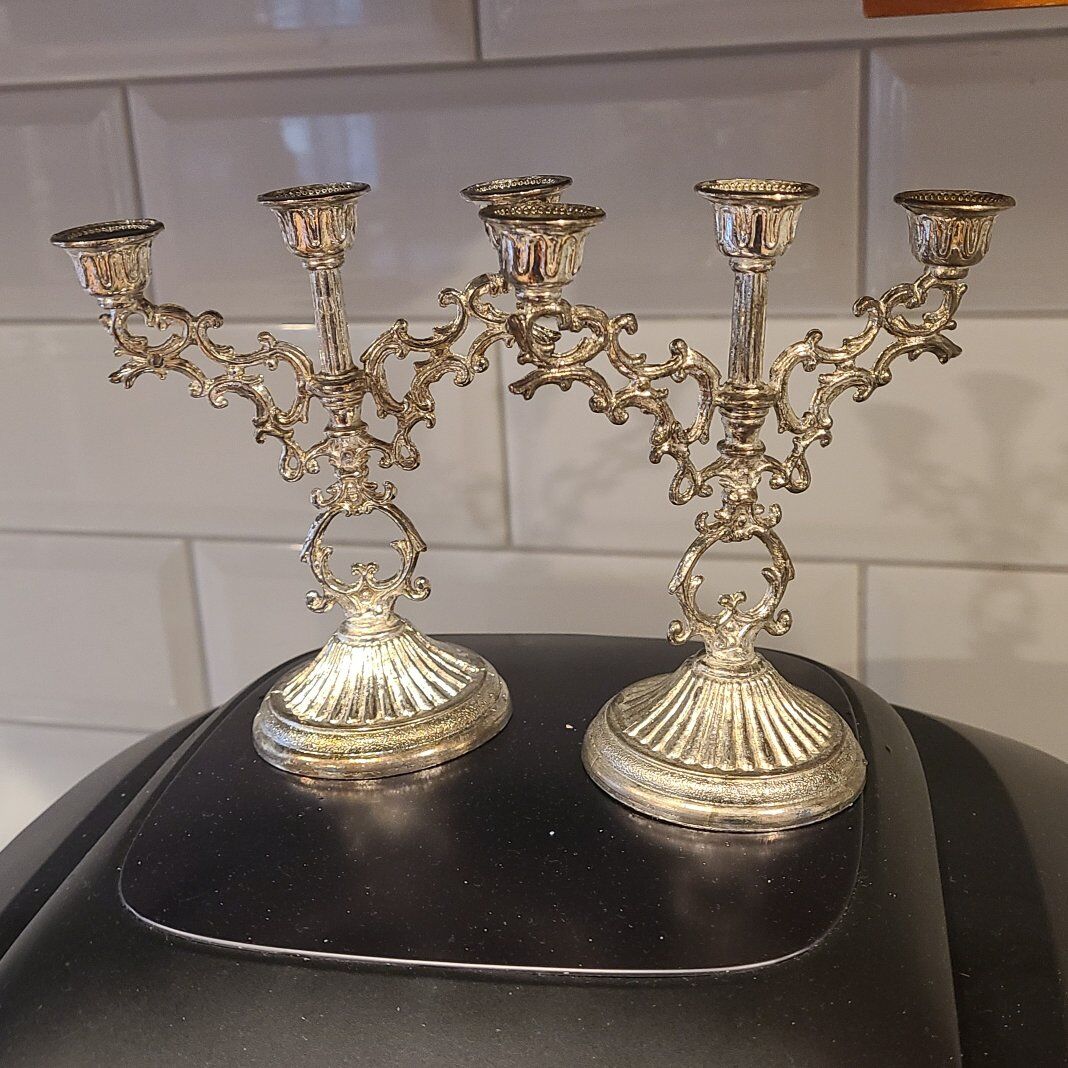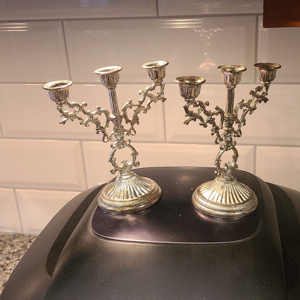 2 mini candleabras These would probably hold the little skinny menorah candles. Antique 2 included in the price approximately 5 H x 45 W.