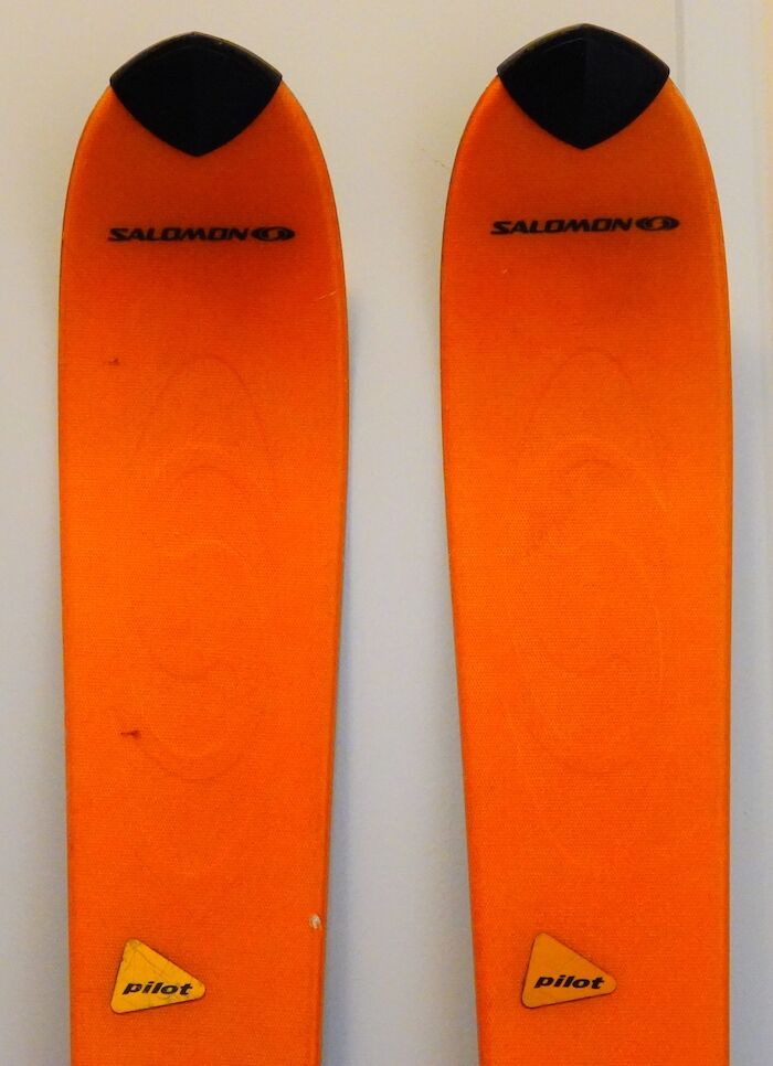 Condition: excellent base and edges condition after recent "The Works Tune & Wax Package with Base Weld Upgrade" done at Sports Den (tune-up alone cost twice the sales price). Never used since the tune-up. These skis are All-Mountain/Freeride style with Integrated Pilot Binding system (Salomon S810 Bindings) great for male or female skiers (my wife rarely skied these). Made in France. Tip Width: 107; Waist: 69; Tail: 102 mm.