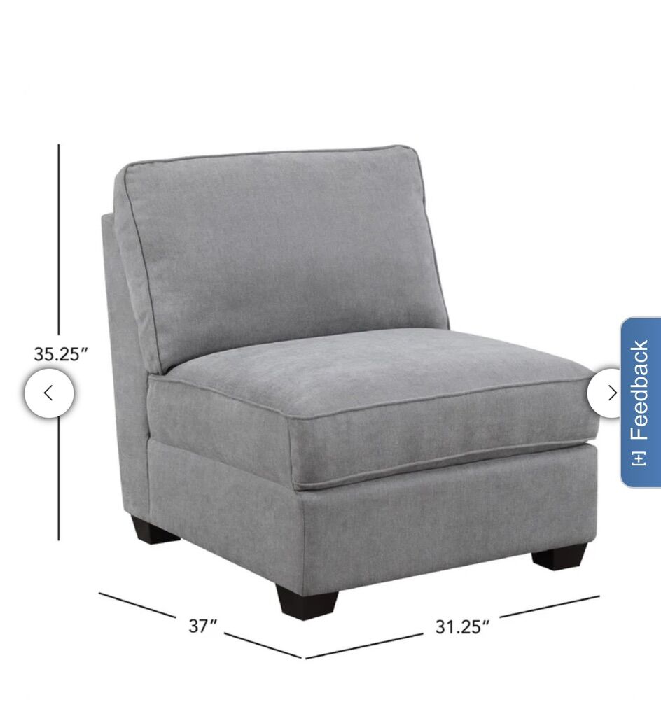 Armless Chair: 31.25L × 37W × 35.25 H Corner Chair: 36.5L × 36.5W × 35.25H Ottoman: 32.5L × 32.5W x 19.5 H