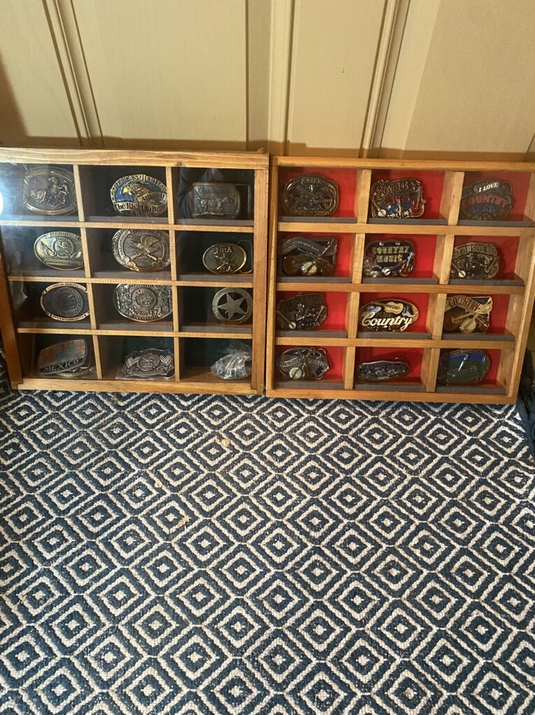 24 buckles in enclosed display cases. Have had them for a long time.