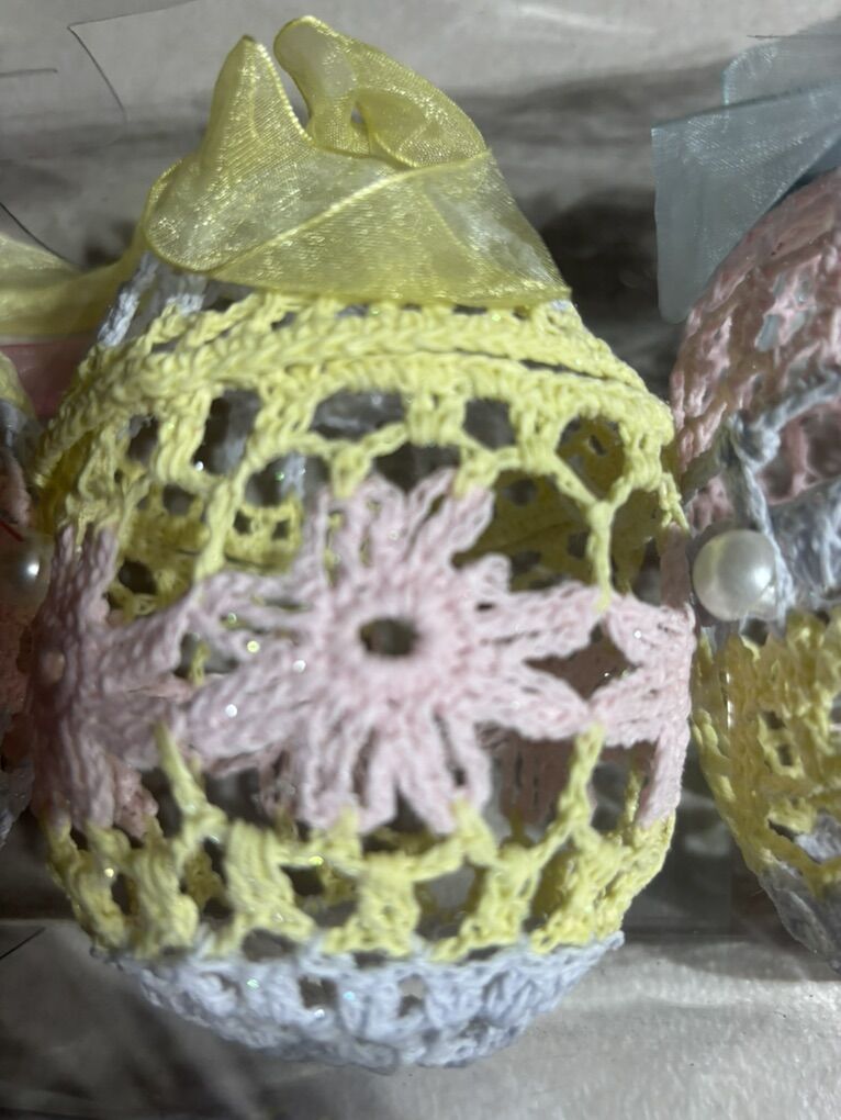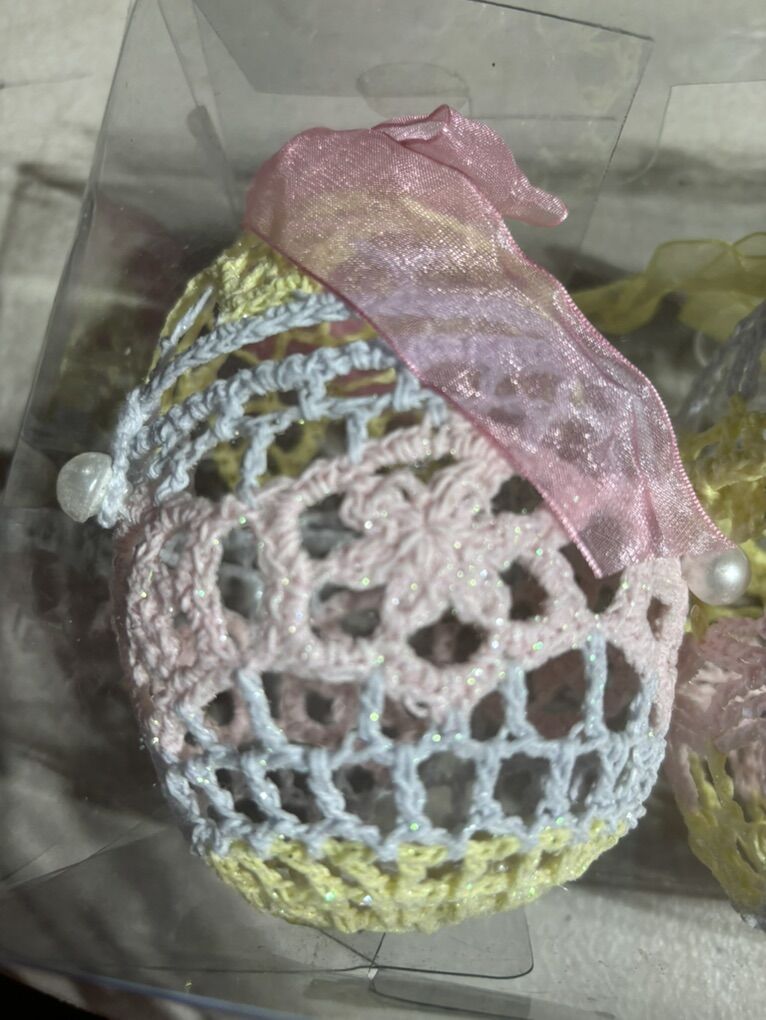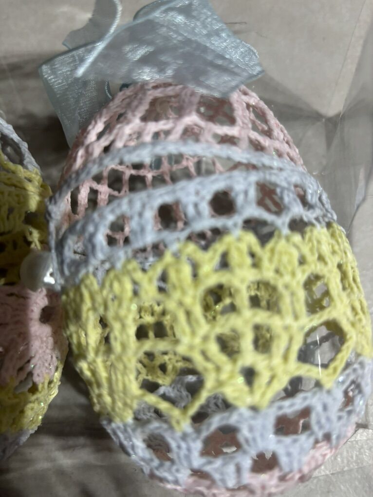 PayPalThis is 3 NEW Crochet Easter Eggs. These are store bought not handmade. They open up to put treats inside. They are 3” x 5”. These are so nice to give as gifts or to use for decorations.