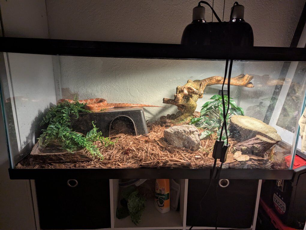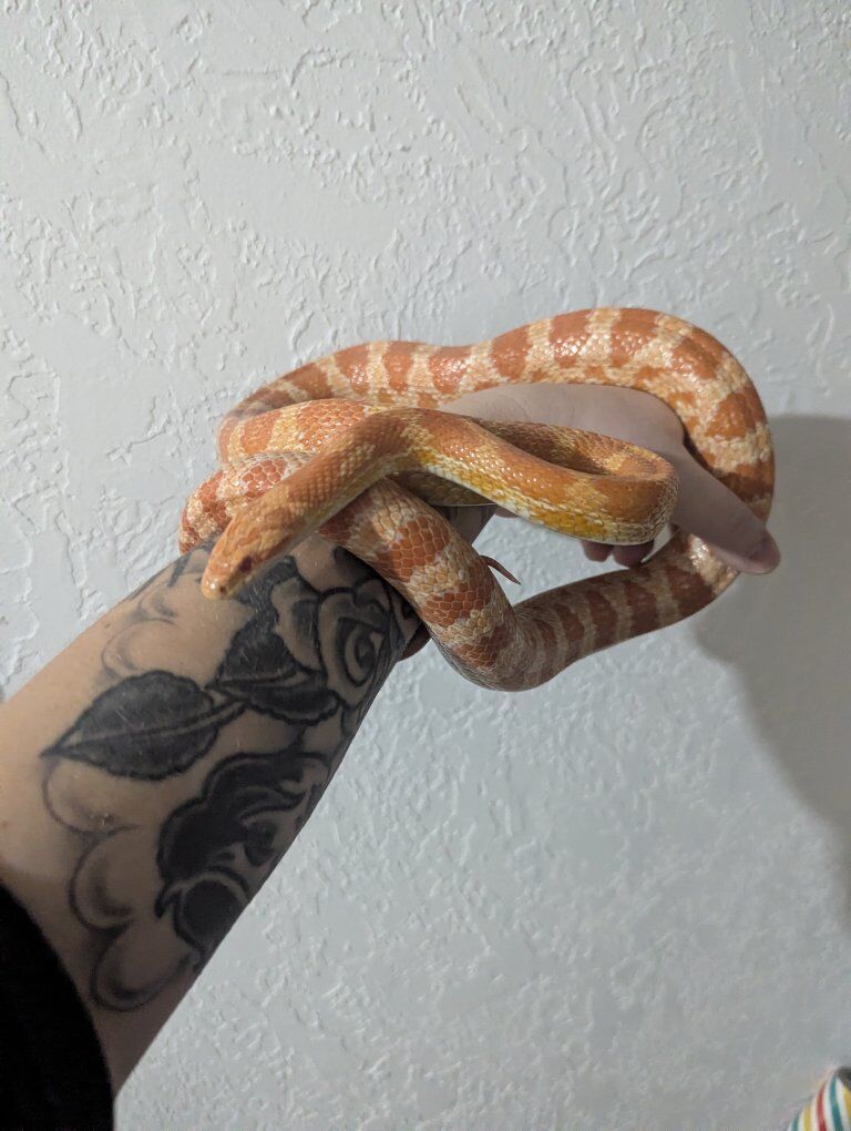 VenmoMeet Caliban, he's a 6 year old Cornsnake. Unfortunately I can't remember his morph! This sweet guy comes with his 40gal enclosure and everything that goes inside. He loves to explore, dig, and be held, but he is a little skittish at first. Never struck or bit or showed any defensive posturing. He's a good boy!