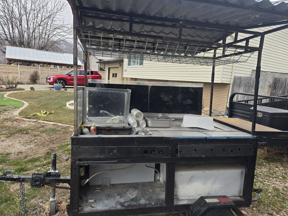 Comes with a built-in metal roof/canopy and serving counter. The cart was previously used as a drink station. It is currently "gutted" and ready for your specific equipment (previously held a mini-fridge and grill). It has some surface rust/weathering from being stored outdoors, but it’s structurally sound and a great weekend project for someone handy. $1,500 OBO