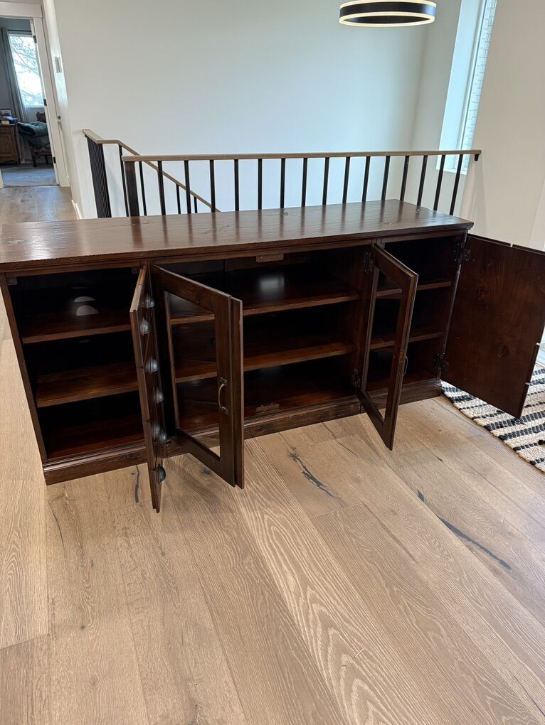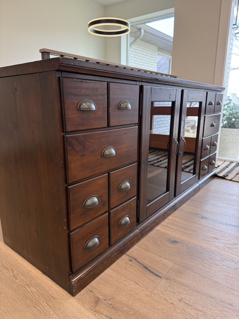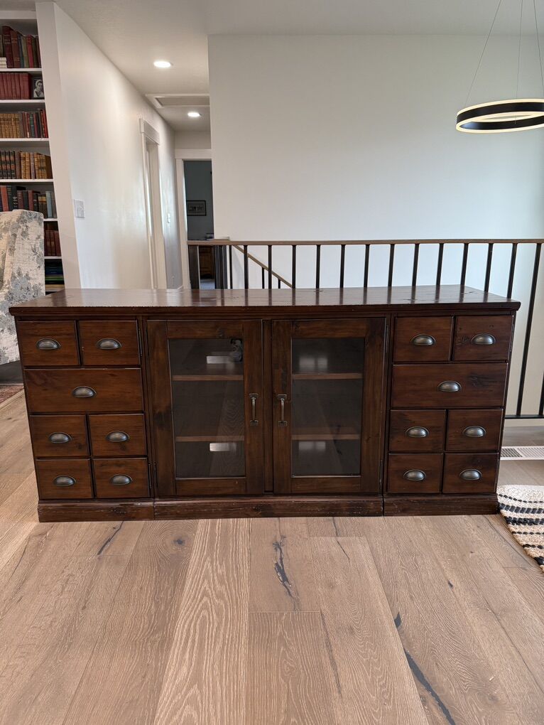 ApplePayA beautifully kept example of Pottery Barn’s Printer’s Buffet storage console. This piece has been kept in a smoke and pet free home and is in great, clean condition. Very minor scuffing around the kickboard and edges, minor scratching on some of the inner shelves, no major damage or wear. These buffets retail for over $2,100!