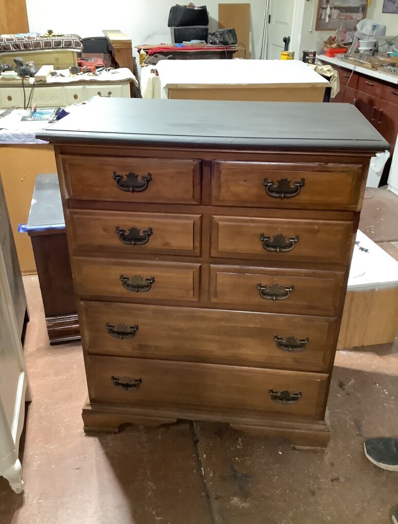 Call or text Bill at 801-721-7337. Asking $90.00. It’s has 3 reg drawers & 1 large, dovetail finished. Measurements are 34w x 43h x 18 d. Top is painted a dark gray. I live in Layton.
