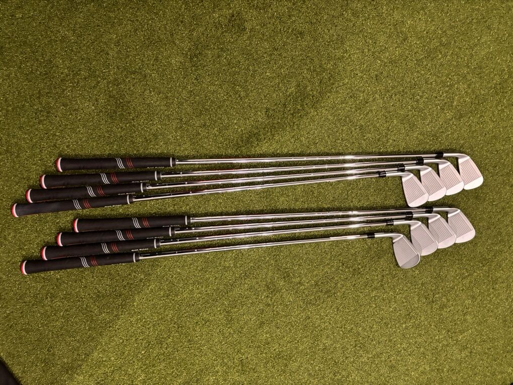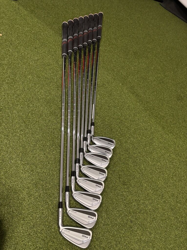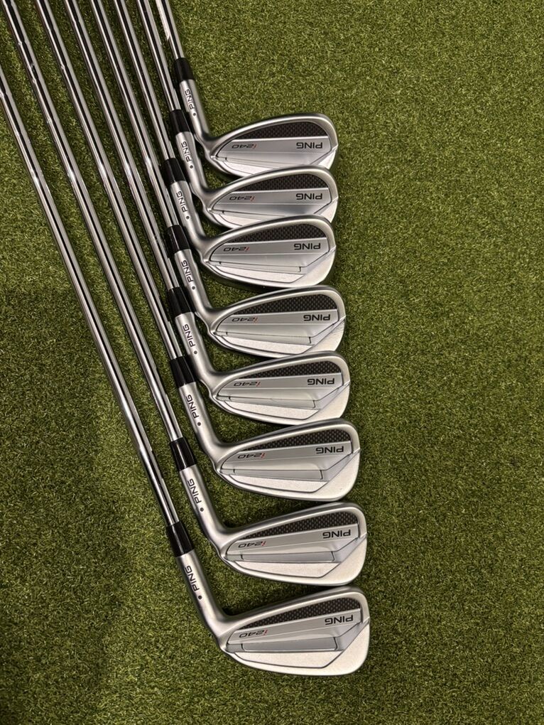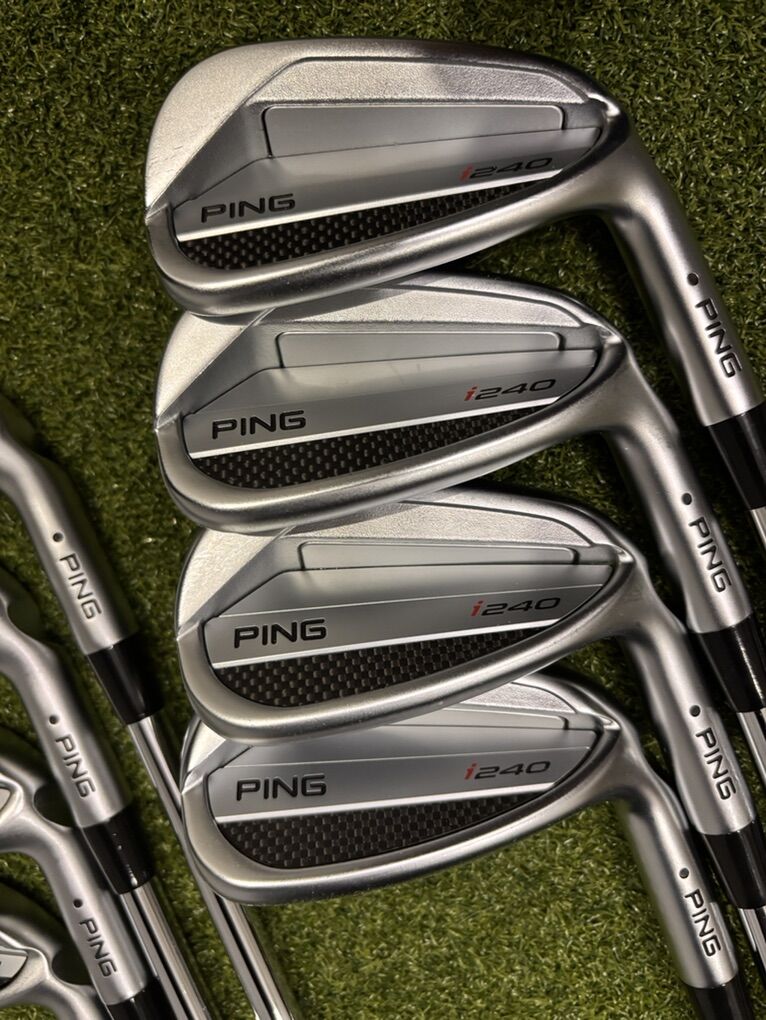ZellePing i240 iron set. Includes 4-PW and UW (8 irons total). Black dot (standard loft/lie). They come with Nippon Pro Modus3 120 steel shafts in stiff flex and upgraded Golf Pride CP2 jumbo grips. These clubs are in very good condition, with just minor wear from playing about 10 rounds or so. Asking $1300.