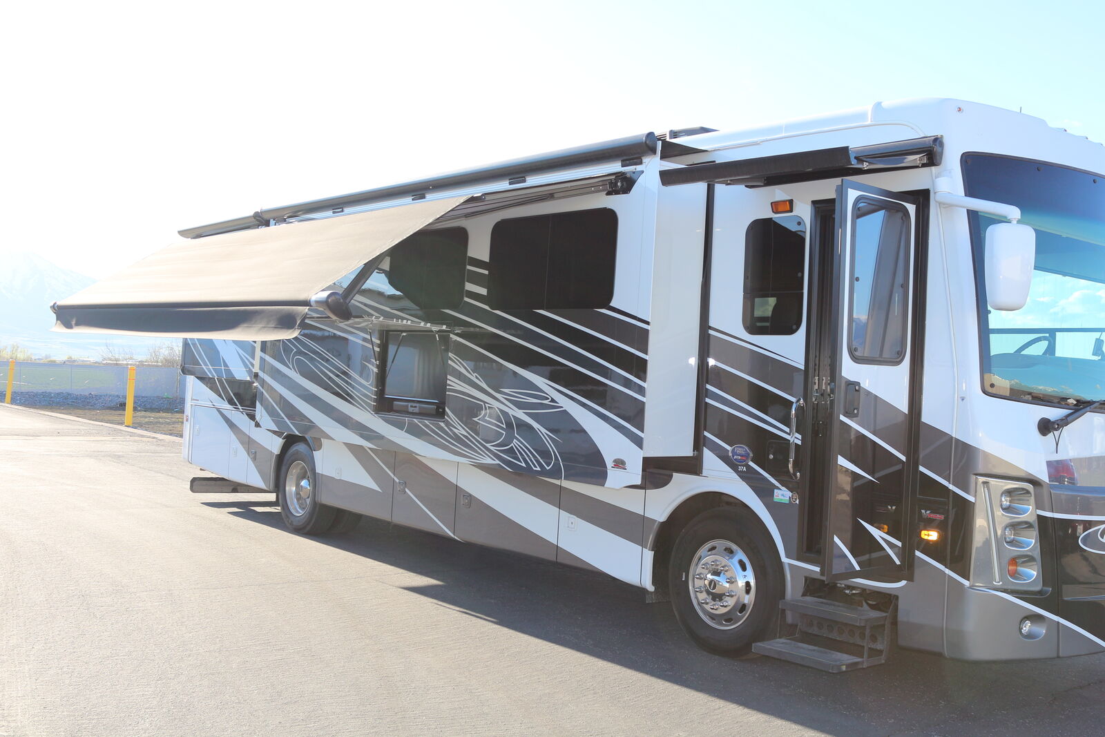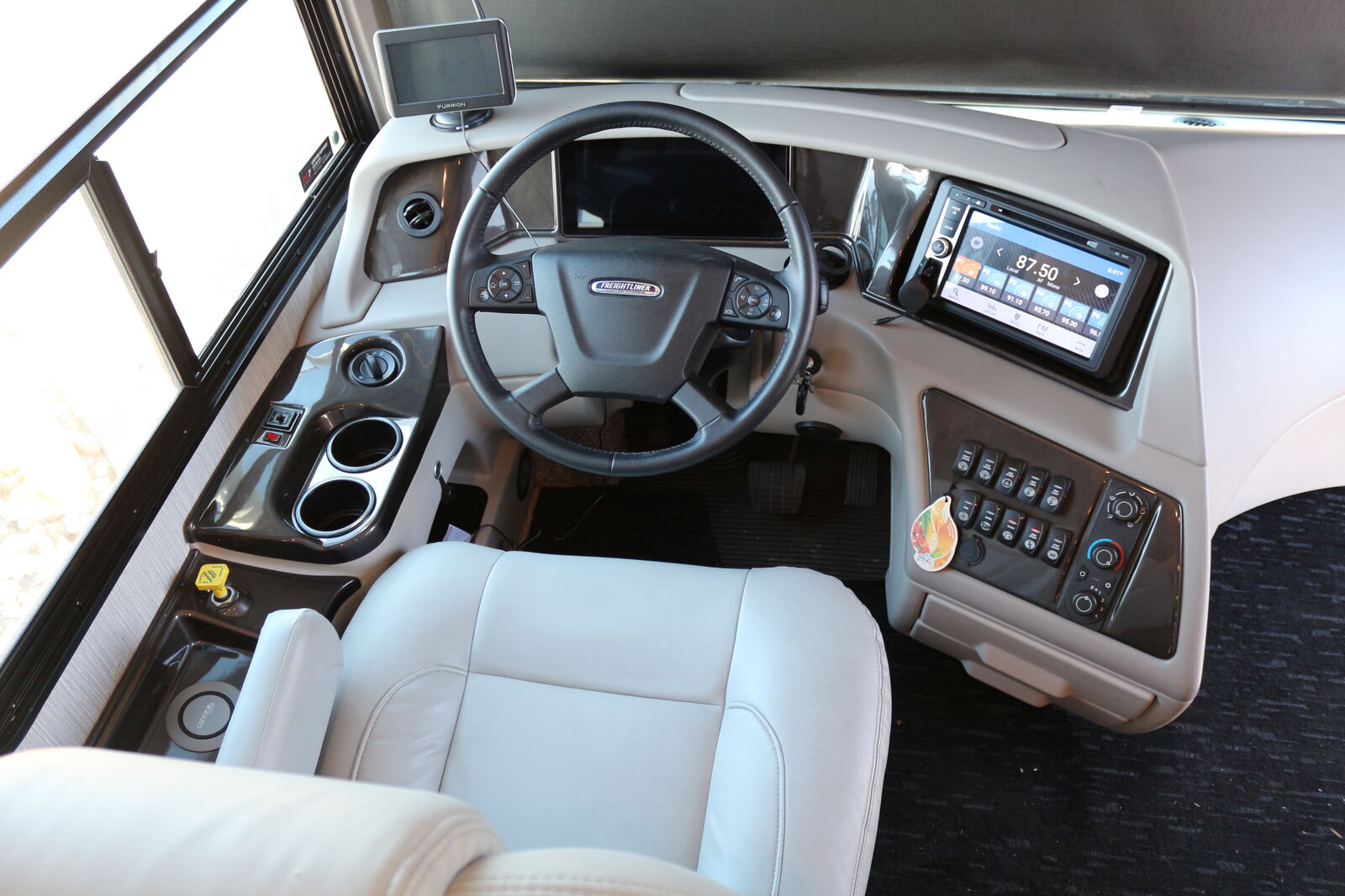· Freightliner XCR Raised Rail chassis, Cummins lSL turbo diesel, 380 HP, 2000RPM, 2200GOV RPM,1150 LB/FT @1400 RPM. 100 gallon, locking dual fill fuel tank.Trailer Hitch,15,000 # Capacity w/Air Tow System. pass thru basement compartments, one with roll out. Power Door awning and power patio awning. keyless entry. 4 TV's, 50" TV raises and lowers, 43' outside tv, two 32" tvs. JBL speakers main tv and exterior tv. Blu Ray and 4k player, splitter to select tv sources. Roof mounted Dish TV with hopper box. Sleeps 6 people, bunk above driver compartment, fold out couch and Olympic Queen matteress. Bed will raise and recline. Aqua Hot water system, allows for the heated floor, hot water on demand and runs heating system, runs on either diesel or electric. Two a/c units on the roof to control temp in front or back bedroom. All electric 50A with auto transfer and 30' cord. 8kW Onan generator for dry camping. Convection Microwave, Induction cooktop, Electric fireplace and central vacuum system. heated fresh water and gray water tanks. Blue ox towing system, water softer system included. Need to sell due to health issues below current value, currently plugged in and ready to view in St. George Utah area.
