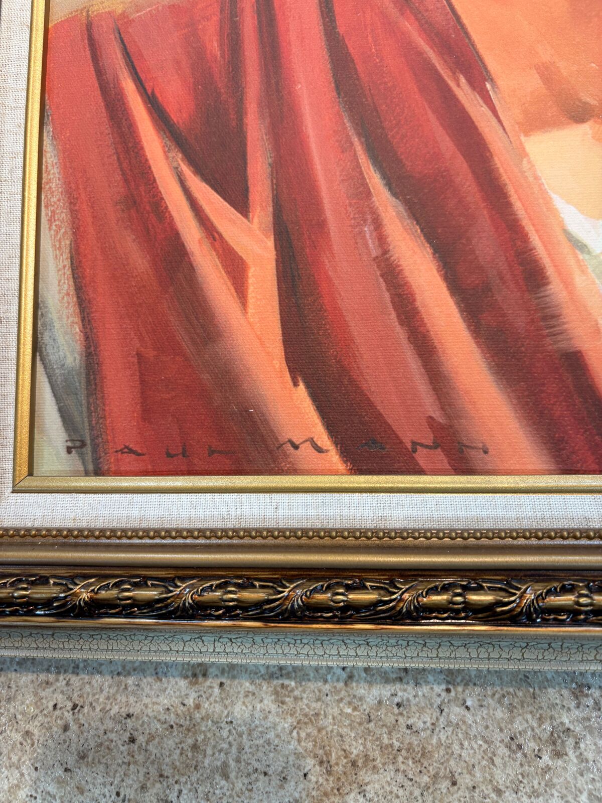 Frame: Ornate gold-tone frame, ready to hang