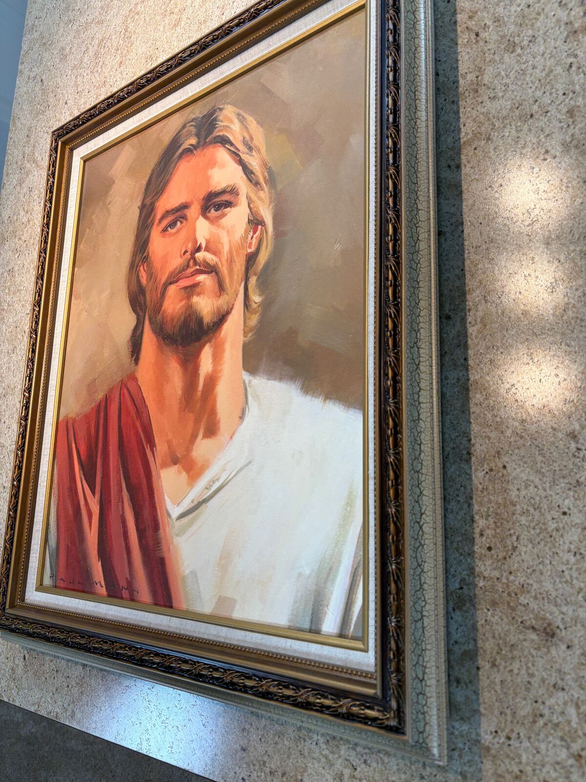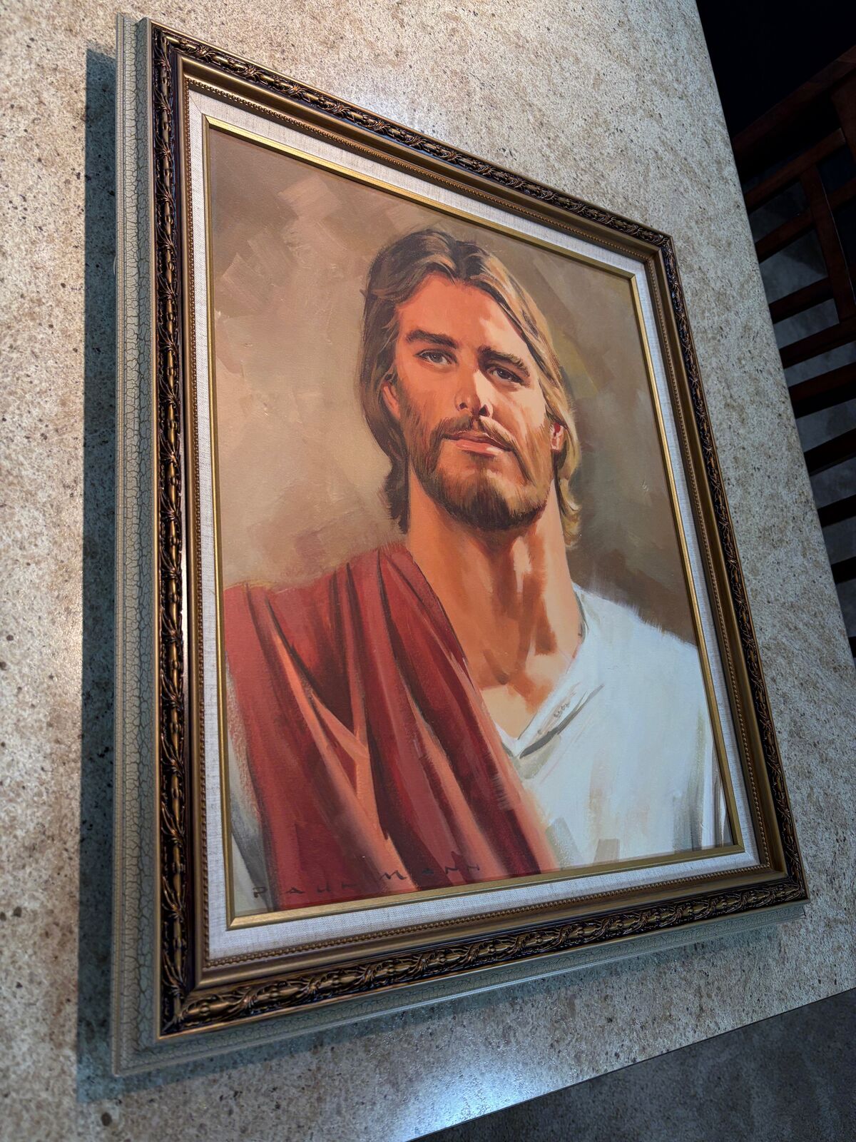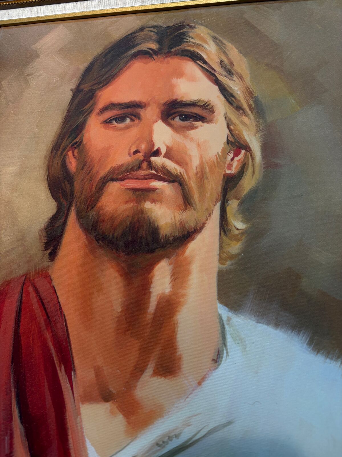 Beautiful framed portrait painting depicting Jesus in a traditional, reverent style. Warm tones, expressive brushwork, and a calm, uplifting presence make this piece ideal for a home, church, office, or devotional space.