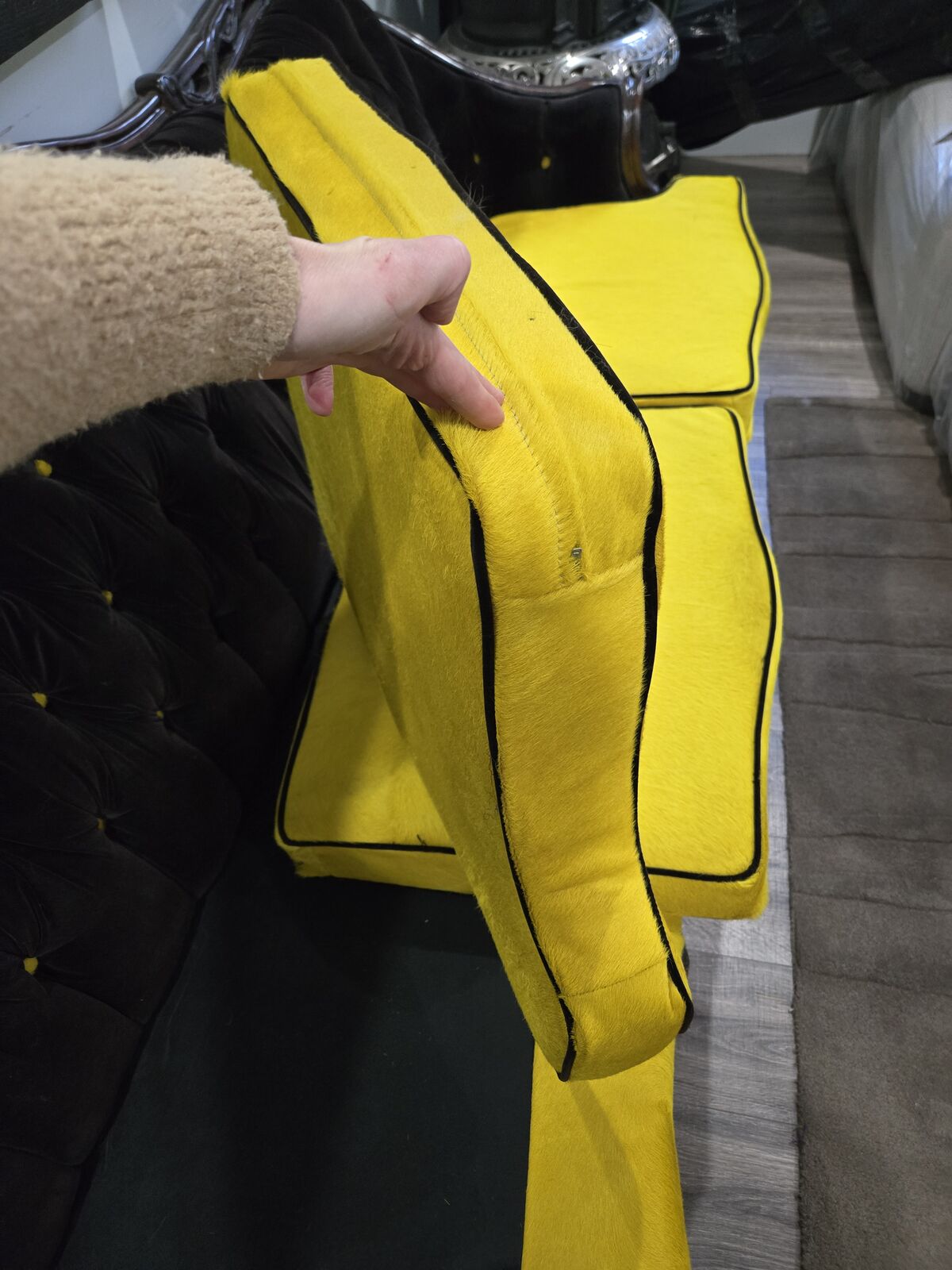 • Bright yellow custom seat cushions with black piping