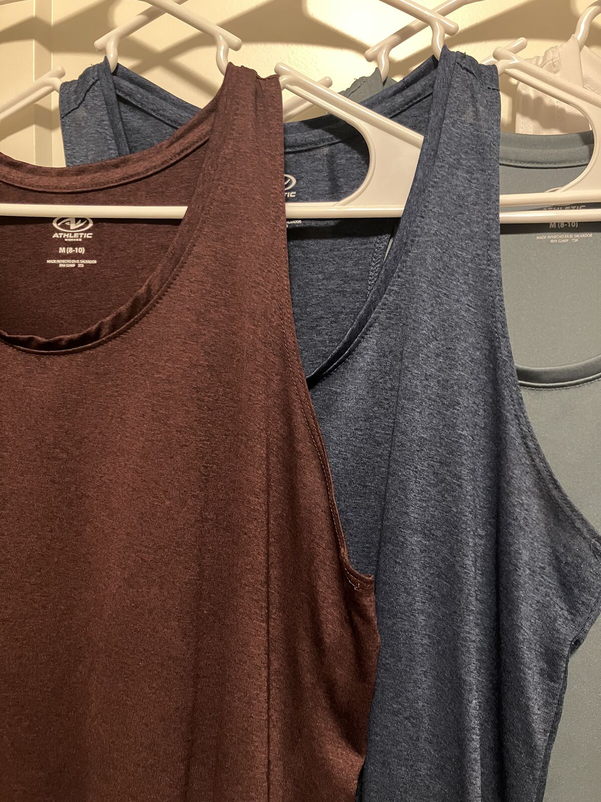 Venmo5 Racerback Active Wear Women’s Tanks. Size Medium (Navy, Maroon, Gray Blue, White, and Pinkish Purple (has a mark on front from label adhesive - see pics) Buy all 5 for $10 Total. Still in great condition, just don't fit anymore.