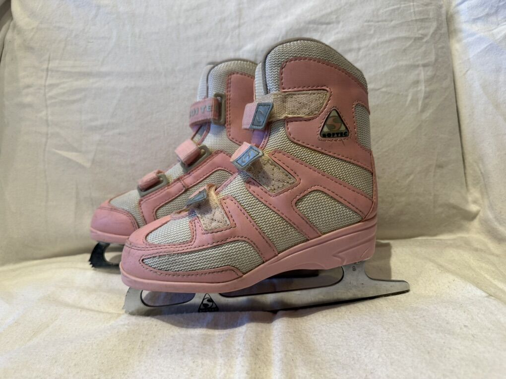 Jackson Softec youth size one pink and white figure skates with Velcro straps. These are in good condition, see photos for details. I take cash or Venmo, but cash is preferred. Text is best. 801-201-4446. Check out my other ads for additional sizes and styles.