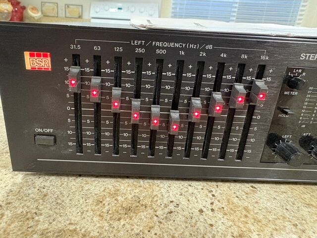 VenmoBSR Stereo Frequency Equalizer / Spectrum Analyzer – Tested & Working - with Owners ManualVintage BSR stereo frequency equalizer with built-in spectrum analyzer. Fully tested and working as intended. All sliders respond smoothly, and the LED spectrum analyzer displays properly. A great addition to any vintage or modern hi-fi setup.