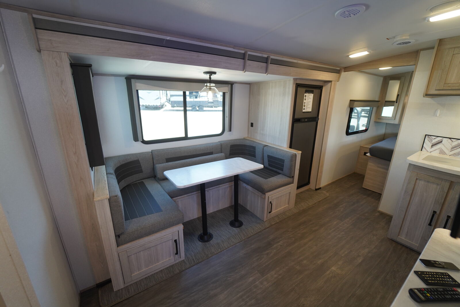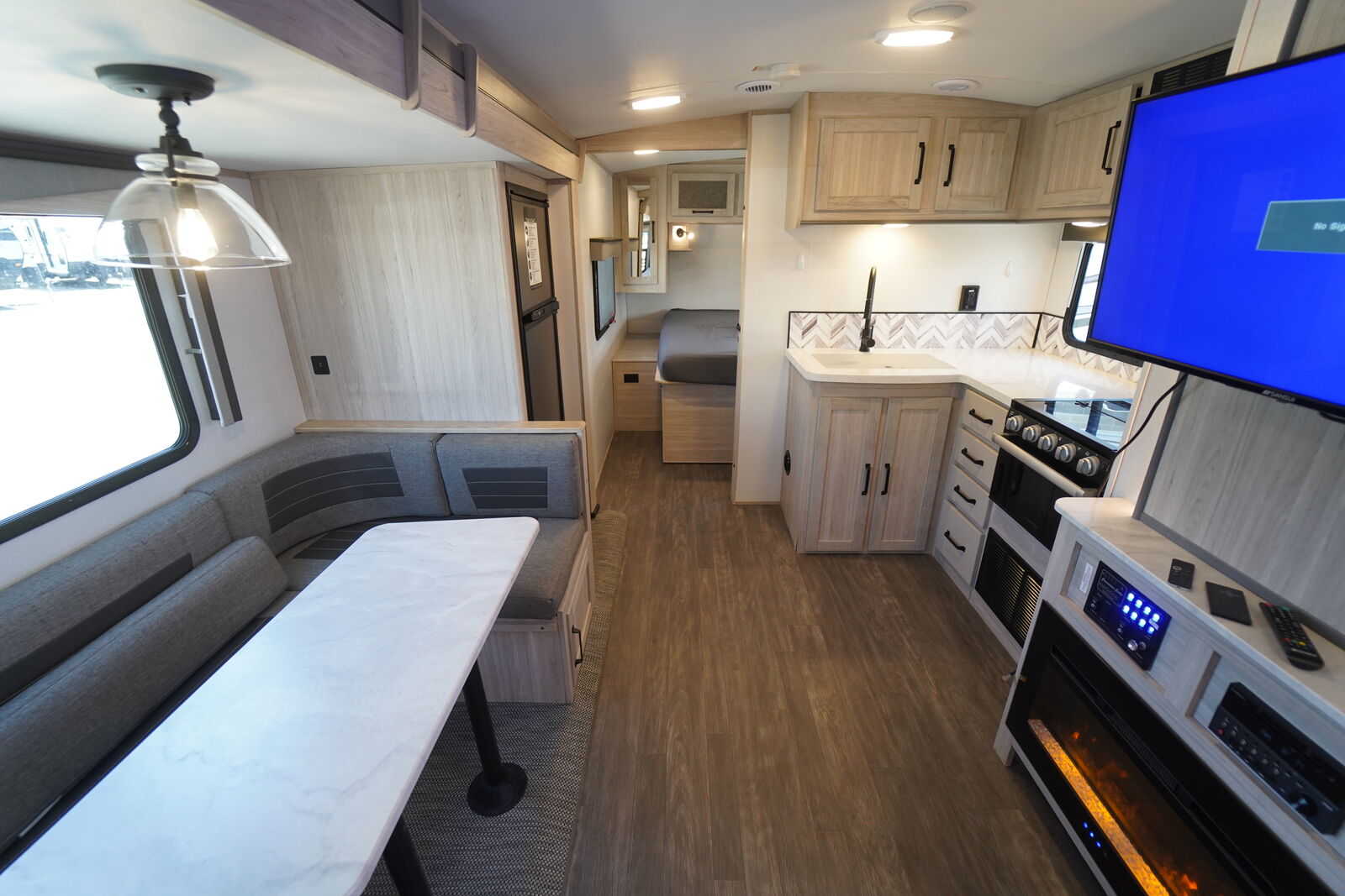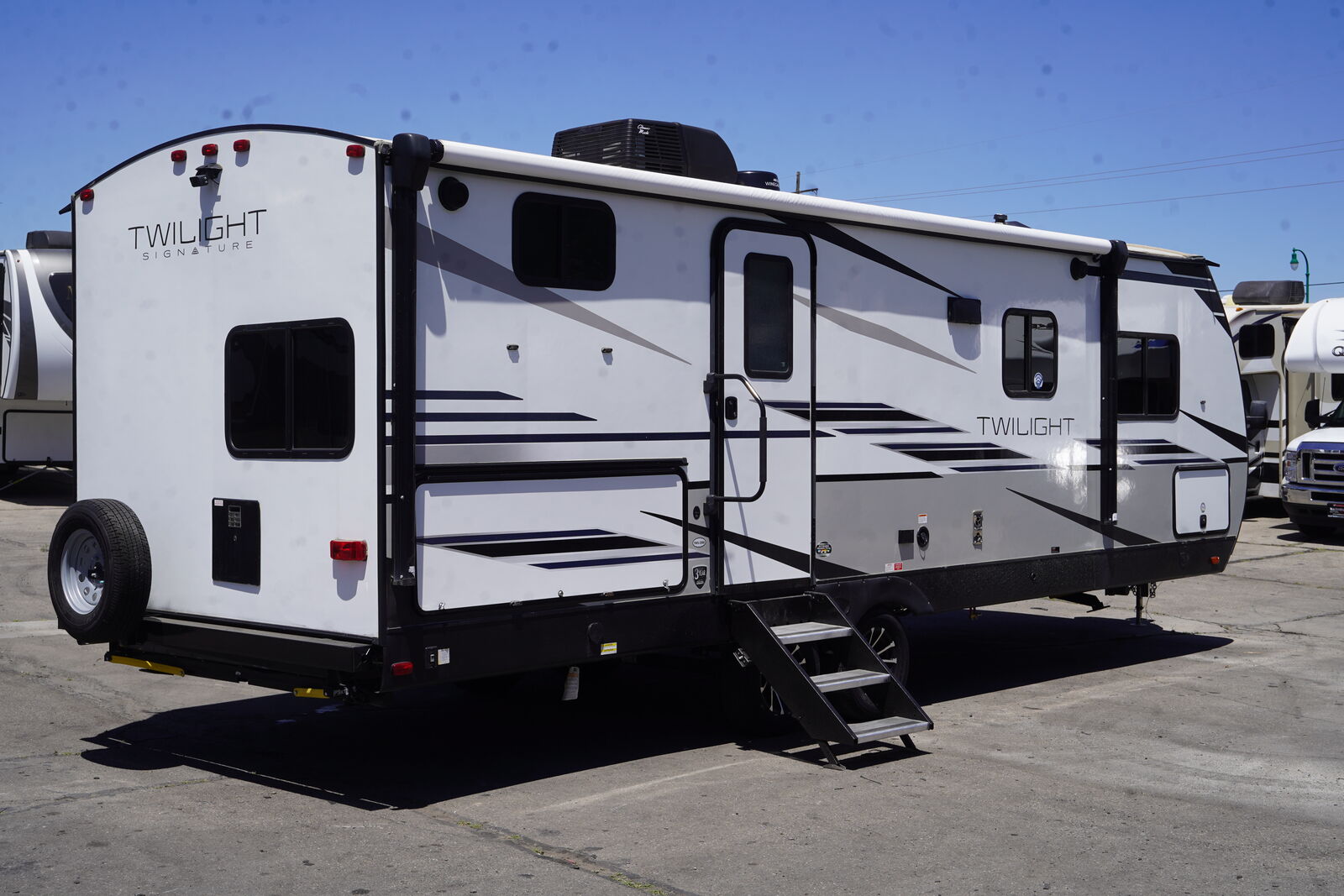 The TWILIGHT 2580 is an AWESOME trailer that meets all the needs of an INCREDIBLE MID-SIZE BUNKHOUSE! It is SUPER SPACIOUS, but NOT TOO BIG! It features a cool FRONT KING SIZE BED that shifts to the side to create more space when needed. It also has a VERY NICE mid-section main living area with a flat screen TV and Fireplace, GIGANTIC PANTRY, nice kitchen layout with the COVETED GAS/ELECTRIC REFRIGERATOR! The rear has double over double bunks and an ALL ENCLOSED BATHROOM.