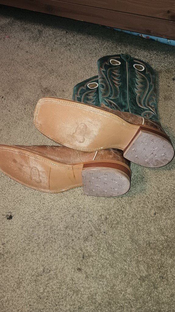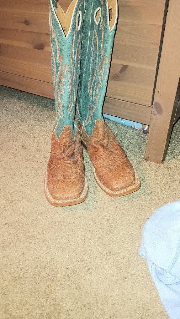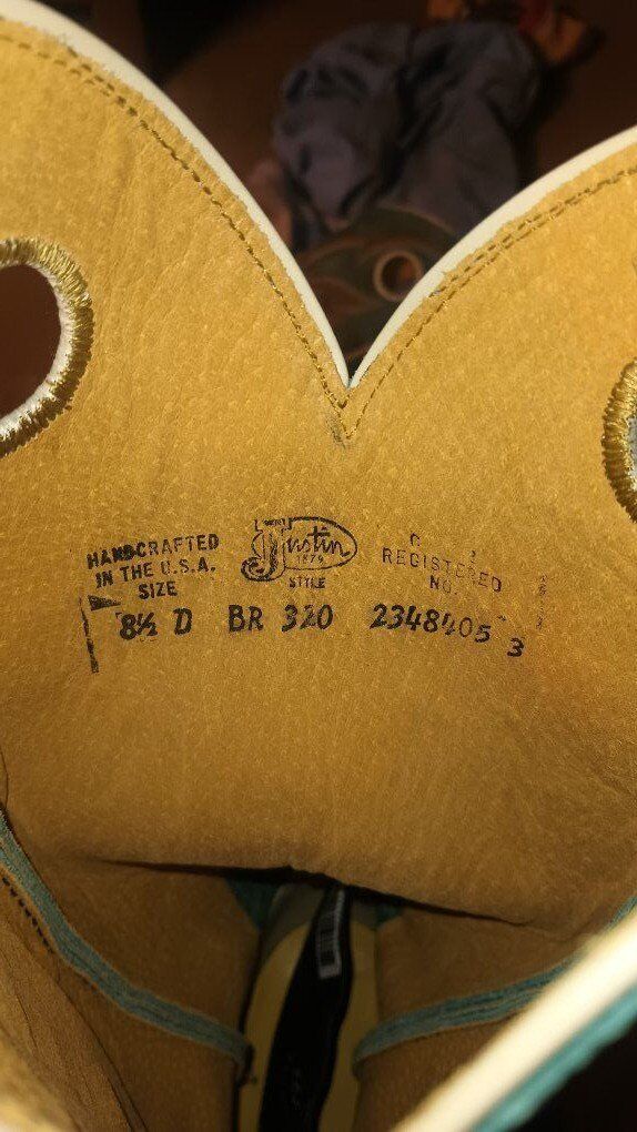 VenmoCondition: Gently used – these have been worn lightly (at least once, possibly a few short wears based on subtle sole marks and very minor tread impressions). No major wear: no heavy scuffs, deep creases, cracks, tears, or odors. Leather remains soft and supple with no significant fading or damage. Shaft and foot look nearly new from normal viewing distance. Soles show light, even wear consistent with minimal use (clean and intact tread). Stored in a smoke-free home. Still plenty of life left – comfortable right away with minimal break-in!From Justin's sought-after Bent Rail collection: durable, stylish, and made for real wear. The teal shaft gives unique pop while the brown foot stays versatile for casual, rodeo, or everyday Western vibes.Original retail: Similar BRL320 models (old map cowhide + colorful tops) list for $289–$300 new at western retailers (often $250–$290 after discounts). Great value on these authentic USA-made Justin boots in solid gently used condition! Perfect for someone wanting premium quality without the new price tag. Serious buyers only. Additional close-up photos of any wear (soles, heels, etc.) available on request.These are a steal compared to new – grab them before they're gone! Bid now or send an offer. Questions? Message me!