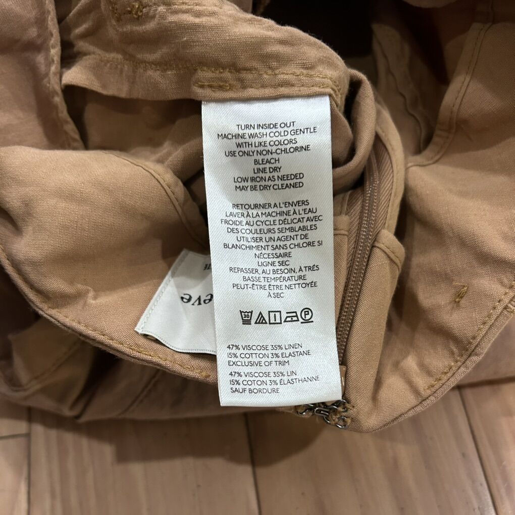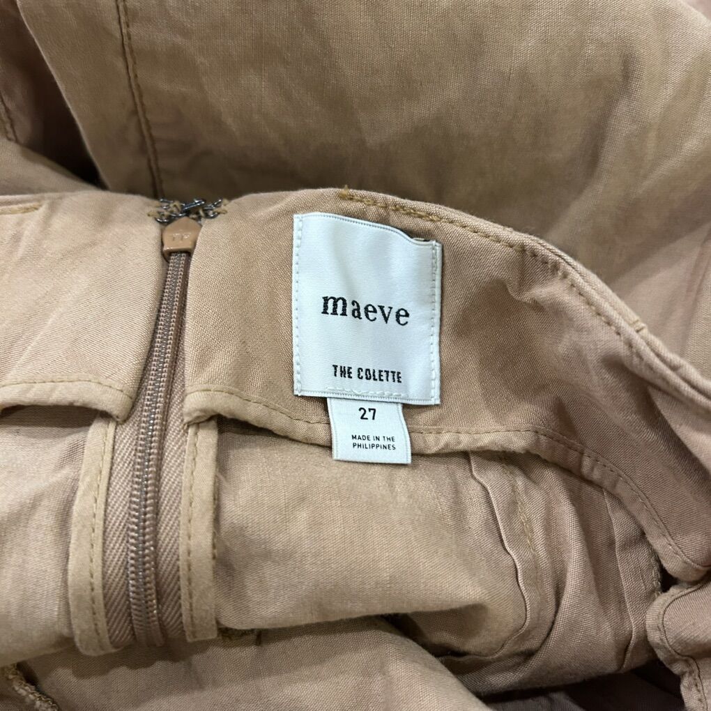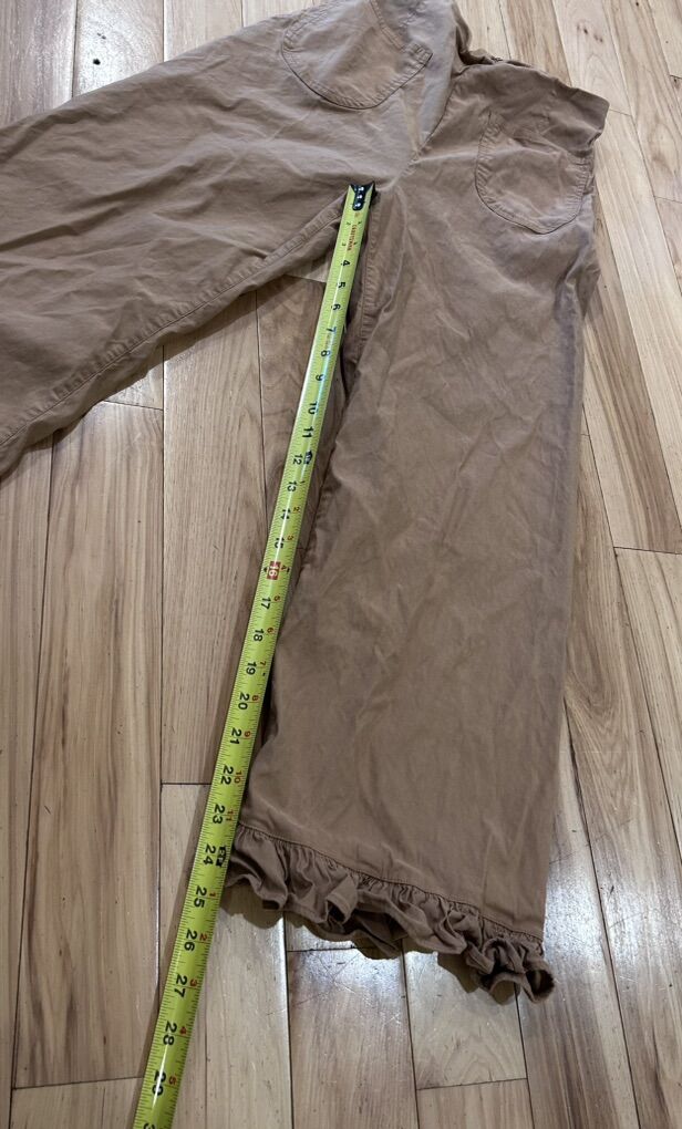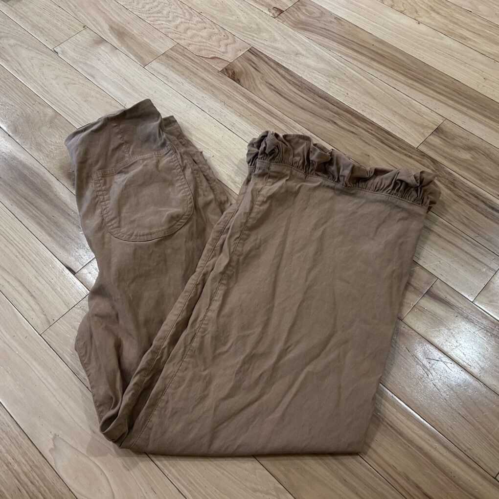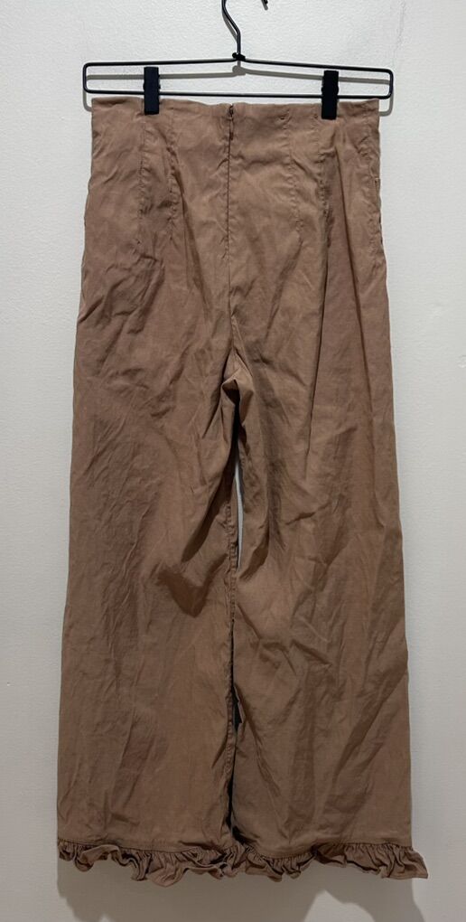 Maeve by Anthropologie The Colette Magic Brick Ruffled Ankle Hem Wide Legged Pants - Women’s Size 27 - in camel brown beige - with pockets and back zipper pockets - made of 35% linen - great condition - pre-owned.