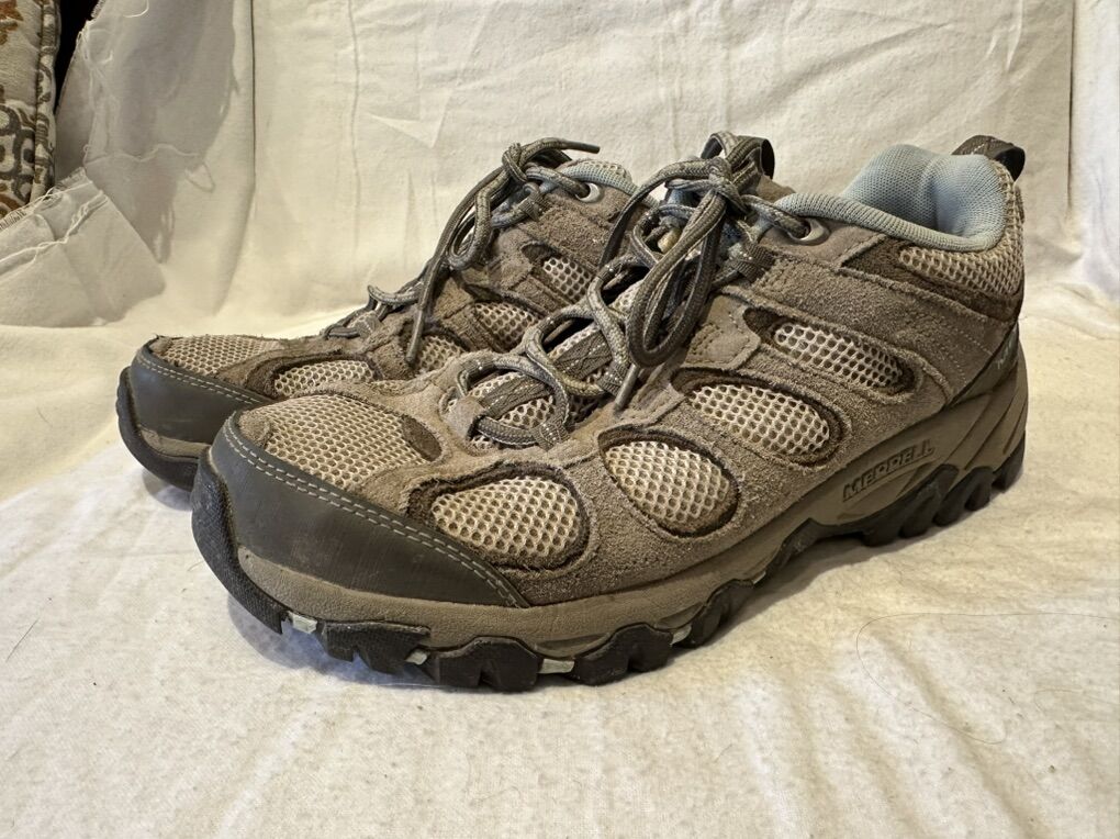 Merrell women women’s size 9.5 beige/ecru leather and mesh hiking shoes. These are in excellent condition, see photos for details. I take cash or Venmo, but cash is preferred. Text is best. 80120144446. Check out my other ads for additional sizes and styles.