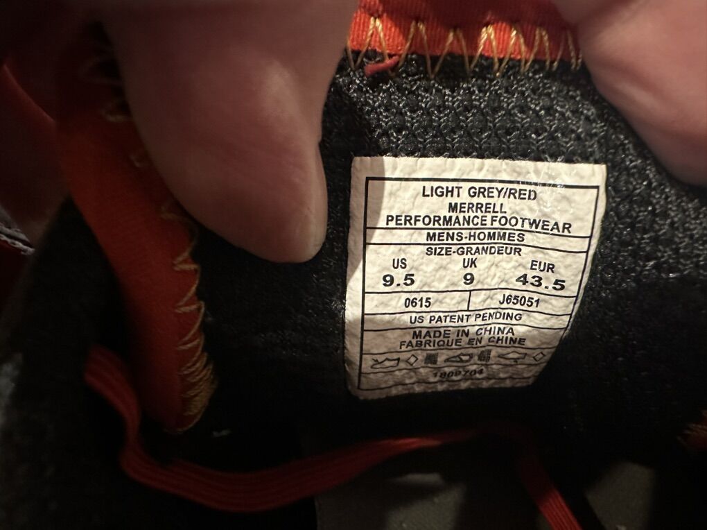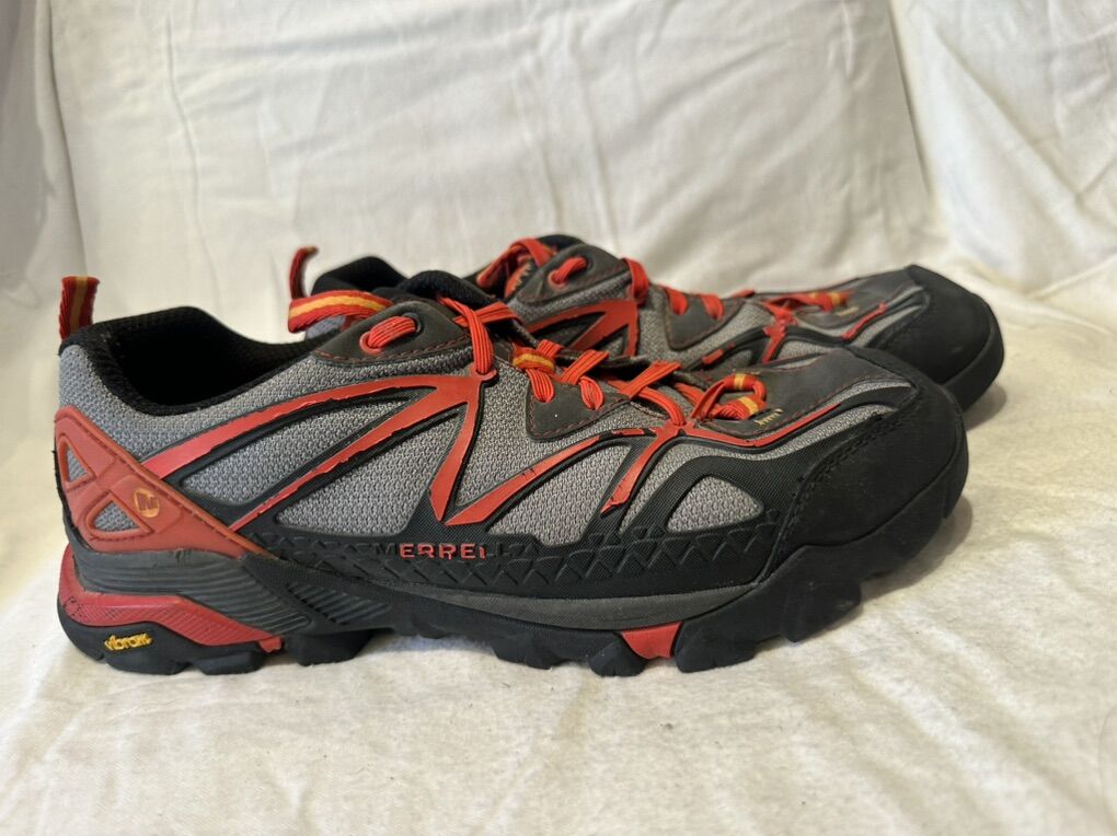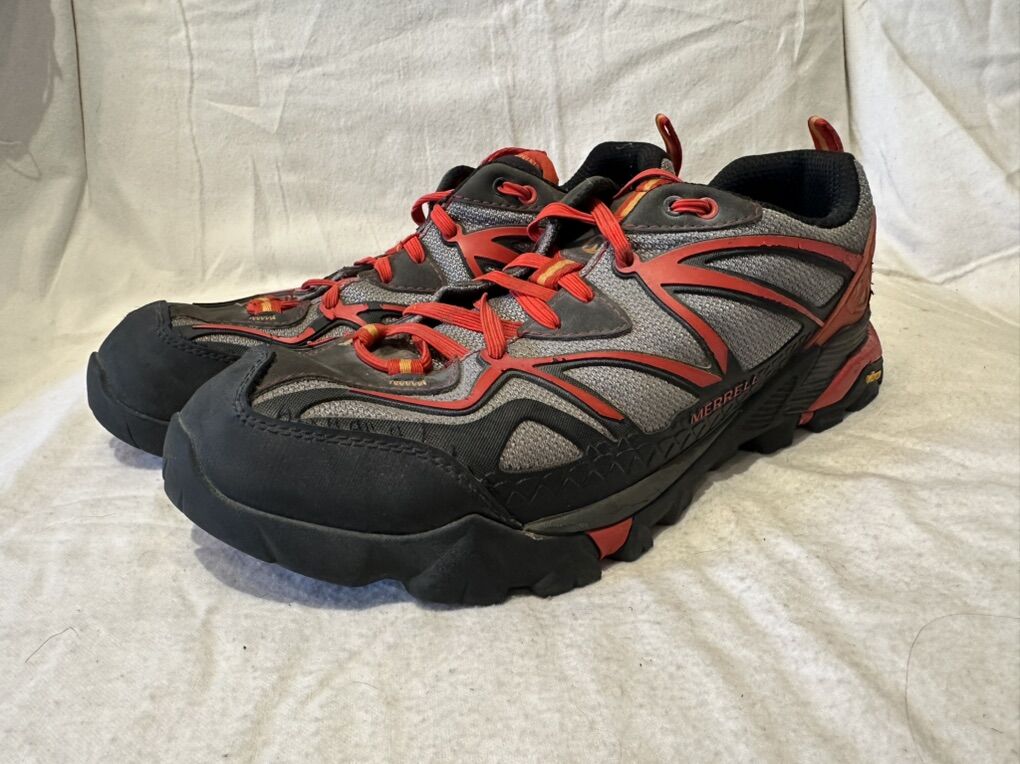 Merrell men’s size 9.5 light gray with red trim, textile hiking shoes. These are in good condition, see photos for details. I take cash or Venmo, but cash is preferred. Text is best. 801-201-4446. Check out my other ads for additional slices and styles.