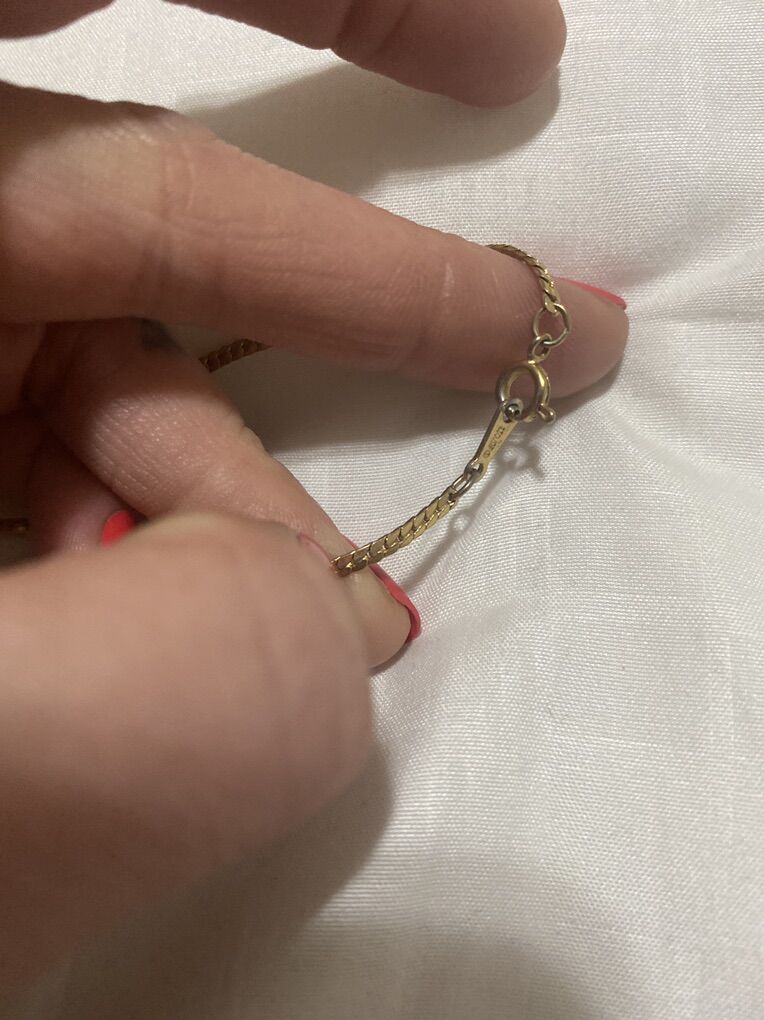 Go to Avon necklace. I’m not sure if it’s gold plated or gold toned but I don’t think that it’s real solid gold but it could be not sure it’s got markings on the clasp Avon and on the back of the charm Avon please make offer. Thank you.