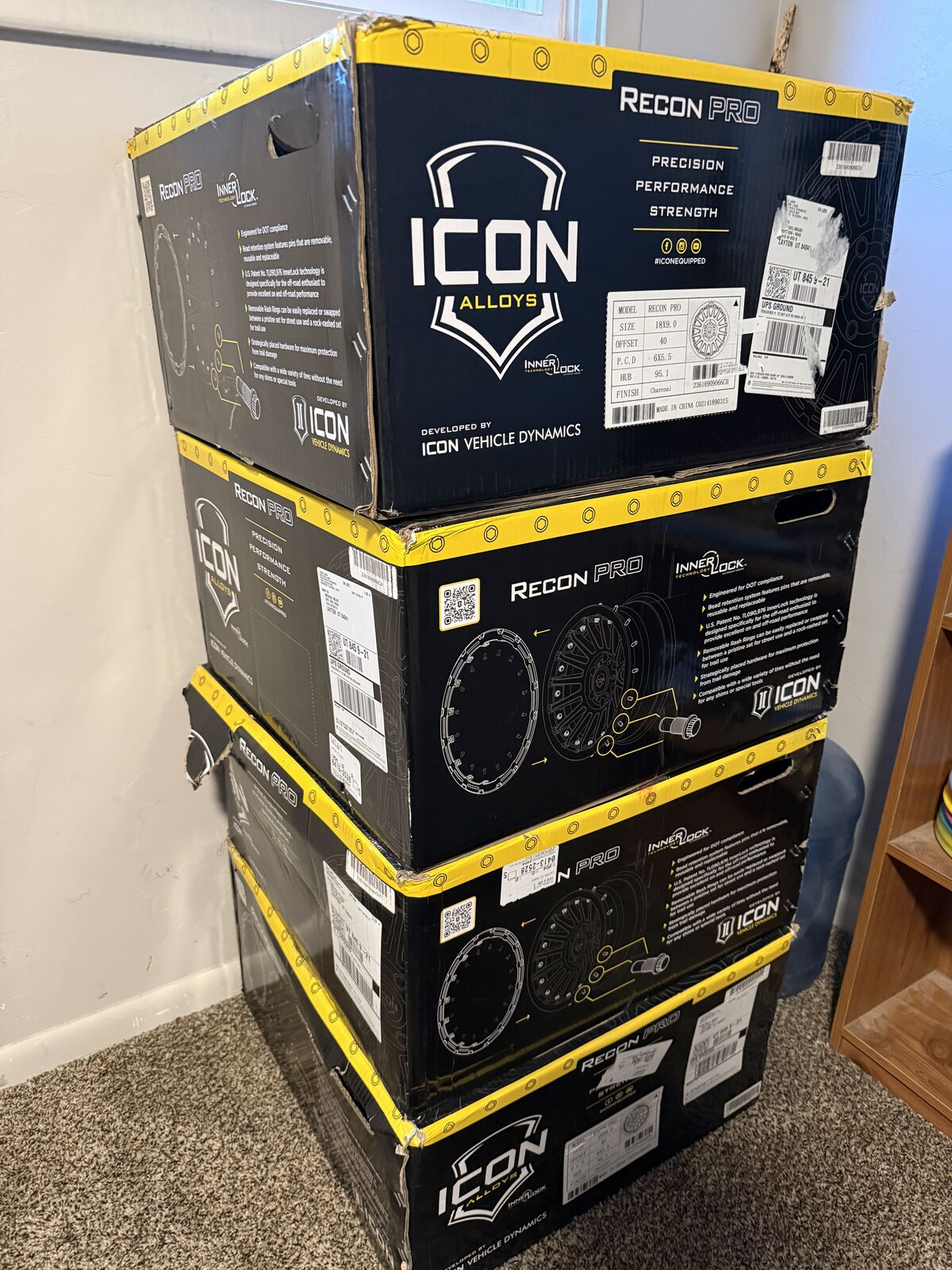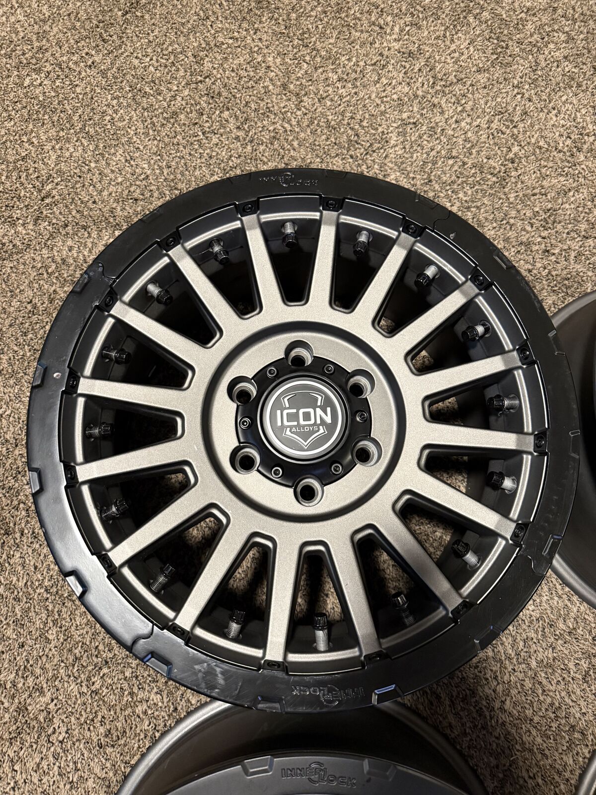 VenmoI bought these wheels from a friend who bought them for a Cybertruck but they didn't fit. Turns out it would have been too much offset for my liking as well. They are a +40mm offset. 18x9 and lug spacing is 6x5.5. They have the Icon Innerlock Technology so it is basically a DOT compliant beadlock system to help secure the tire to the wheel. these were $440 a piece. my price is $850 for all 4.